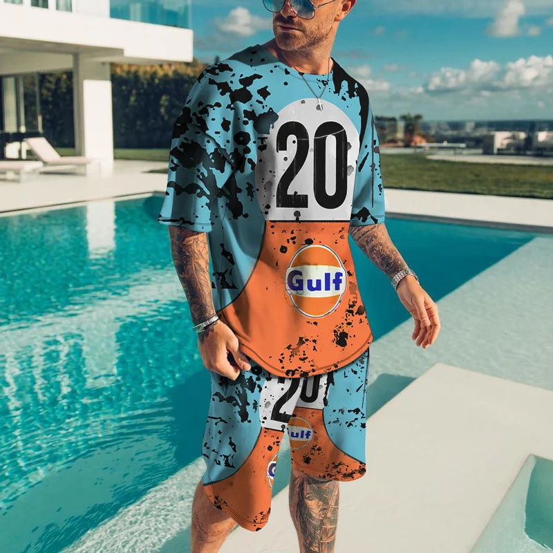 Спортивный костюм мужской из 2 предметов, модная Уличная Повседневная футболка с 3D принтом, шорты с коротким рукавом