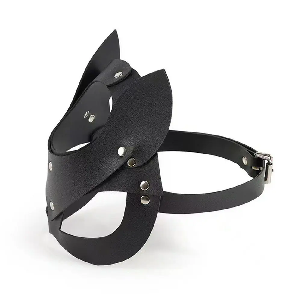 Сексуальная кожаная маска кошки БДСМ фетиш голова кошки черные полуглаза Косплей лицо для взрослых экзотические аксессуары маска для Хэллоуина маскарада Вечерние
