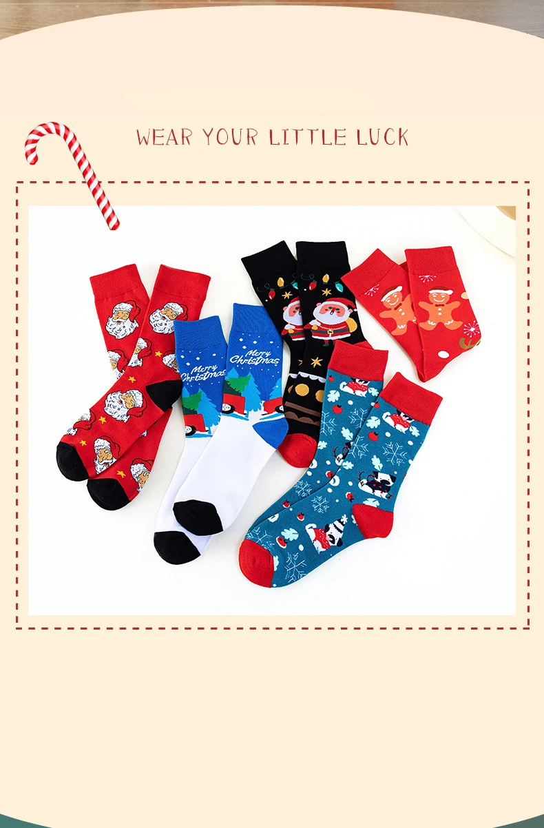 COZOK 2021 Новые забавные рождественские носки для мужчин и женщин зимние хлопковые олени Snaw Санта-Клаус Мультяшные одиночные иглы рождественские подарки