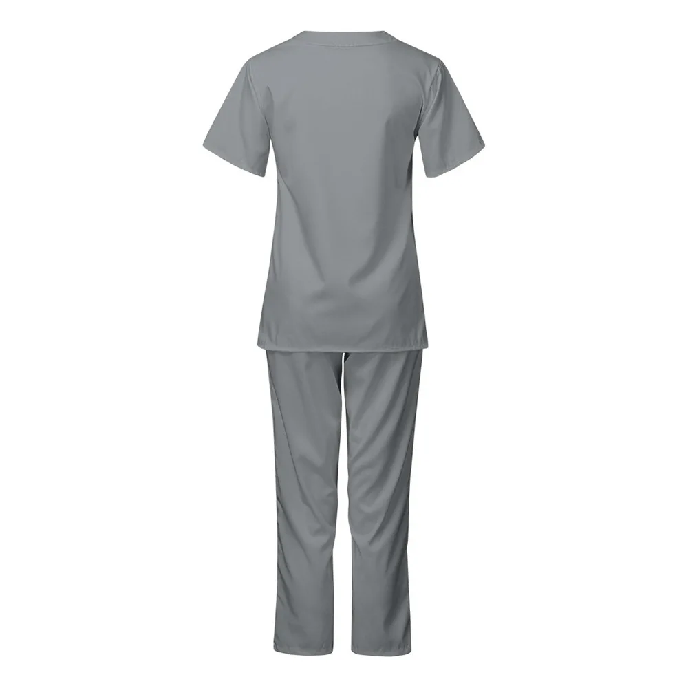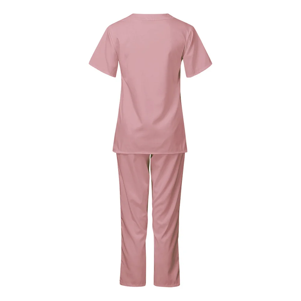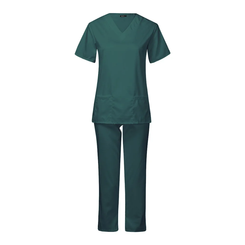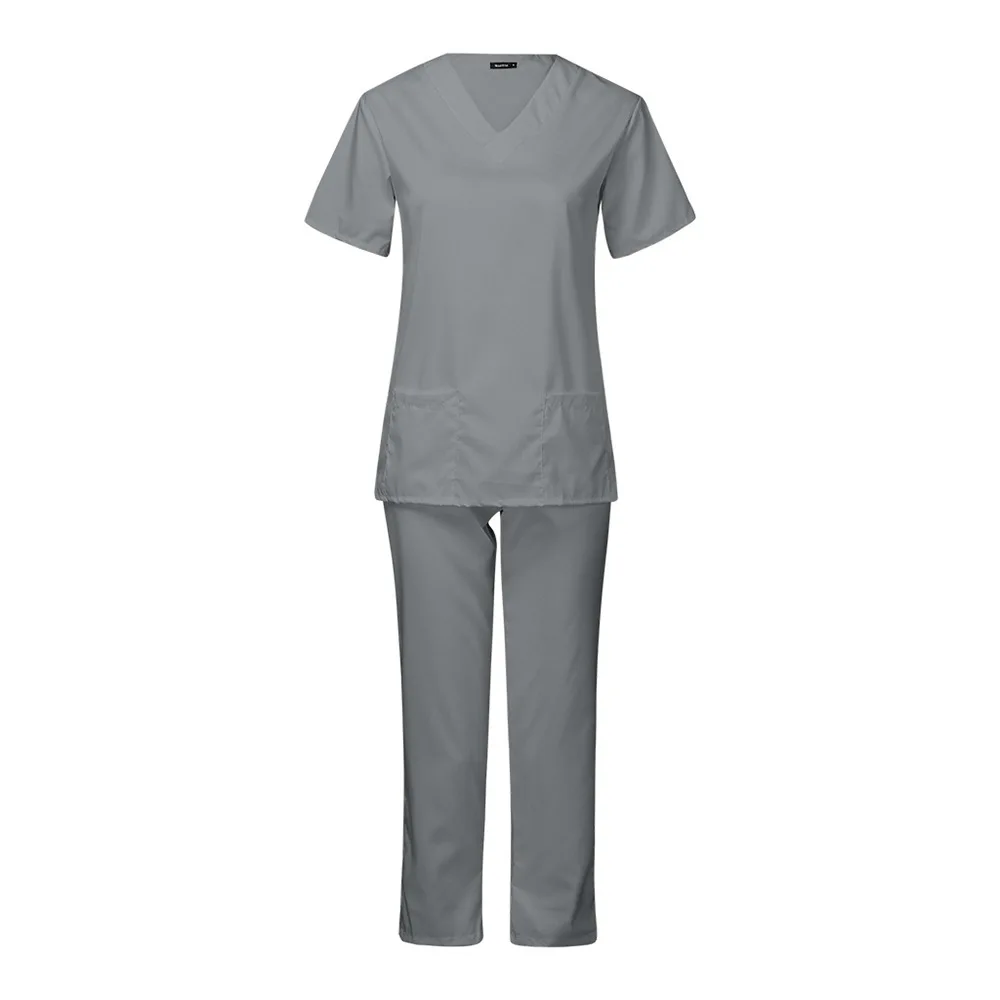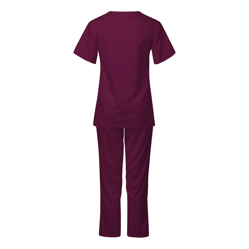 Однотонный топ + штаны, женская униформа медсестры с коротким рукав...