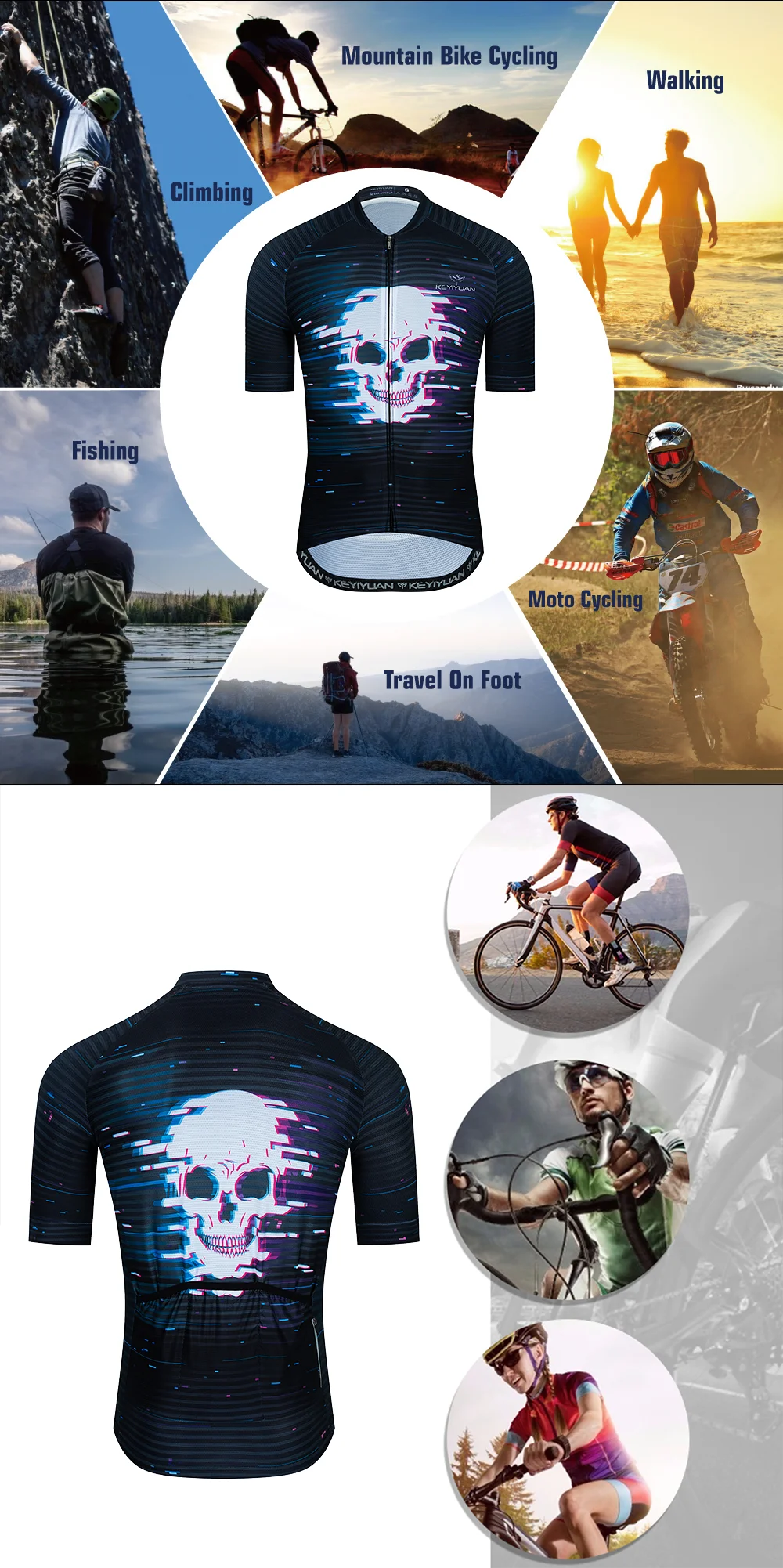 Серия KEYIYUAN с черепом, велосипедная Джерси, мужская одежда с коротким рукавом для велосипеда, топы, рубашки для дорожного велосипеда, одежда для горного велосипеда, мужские толстовки
