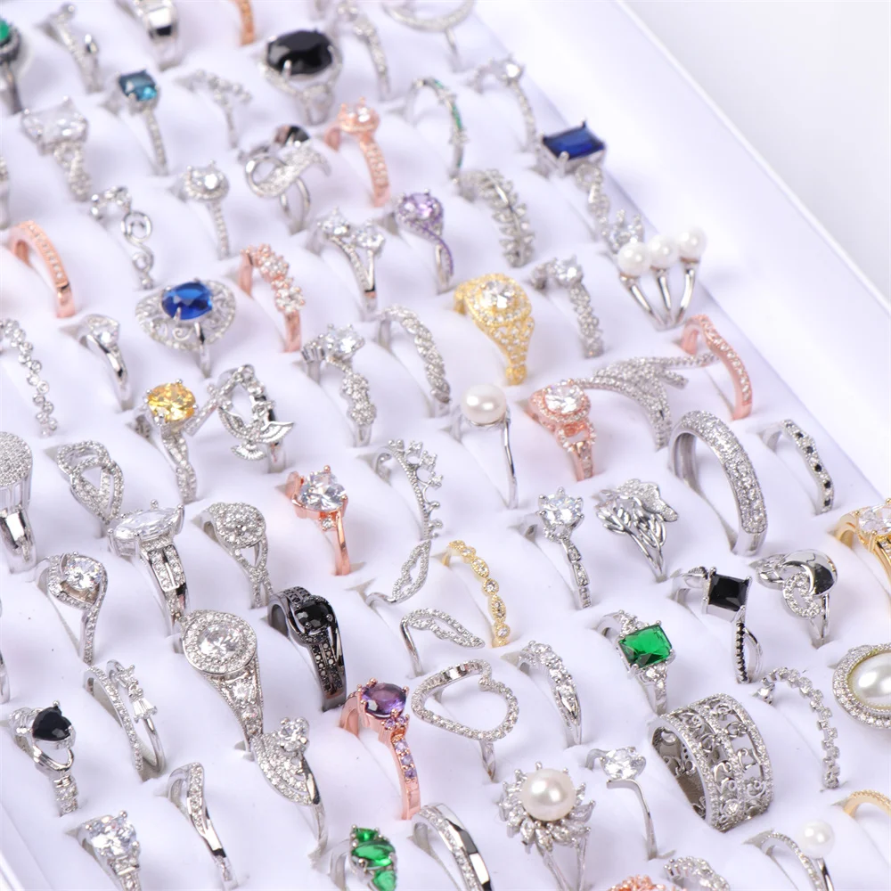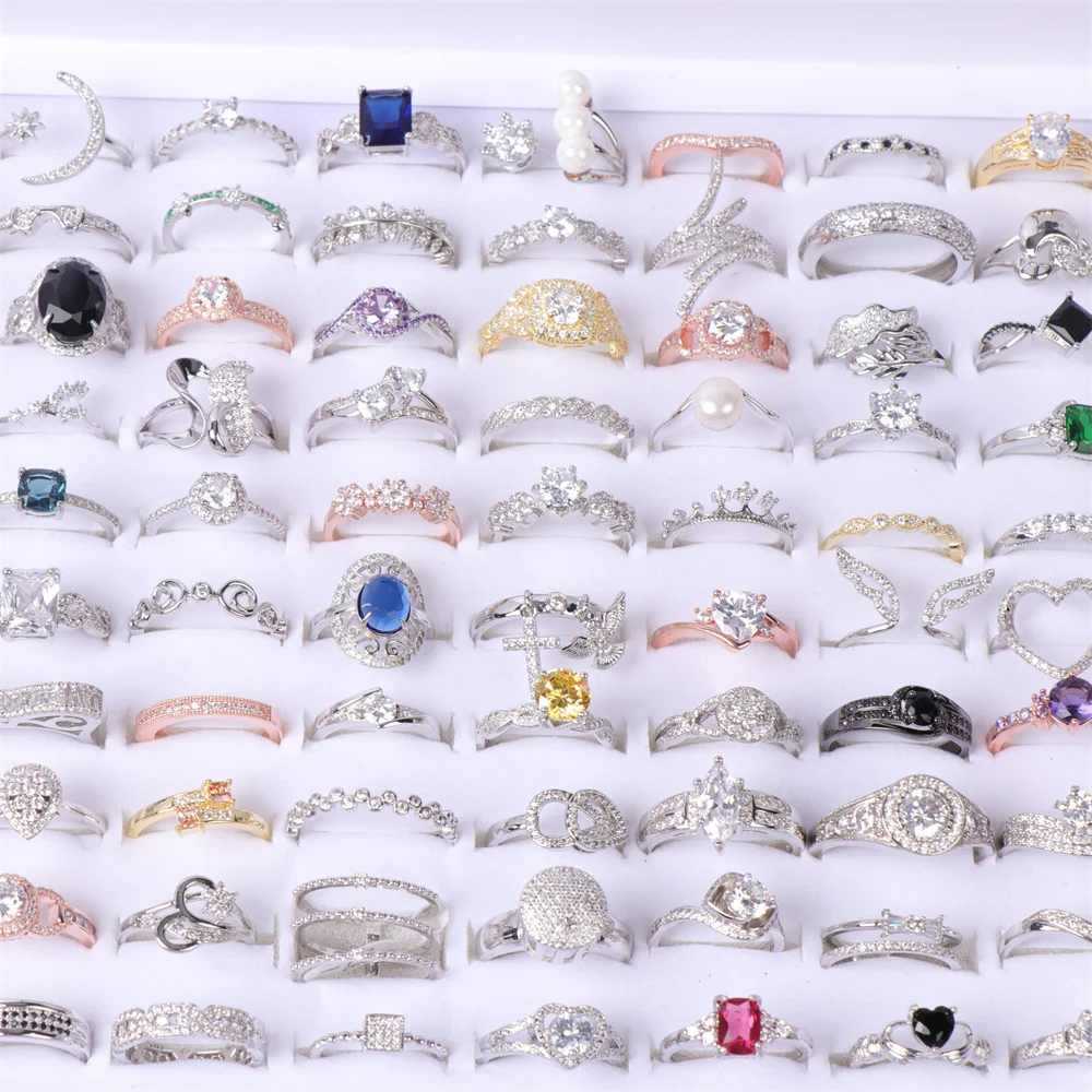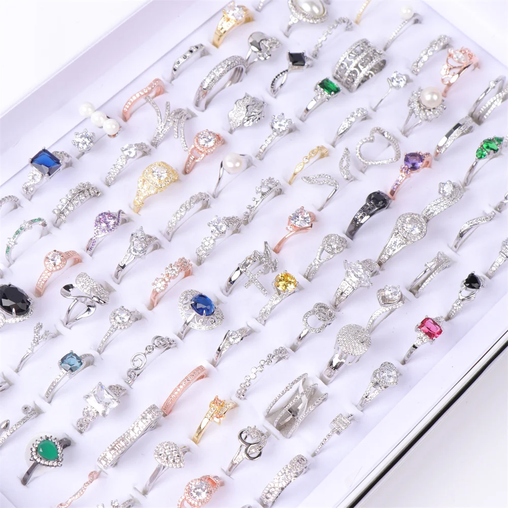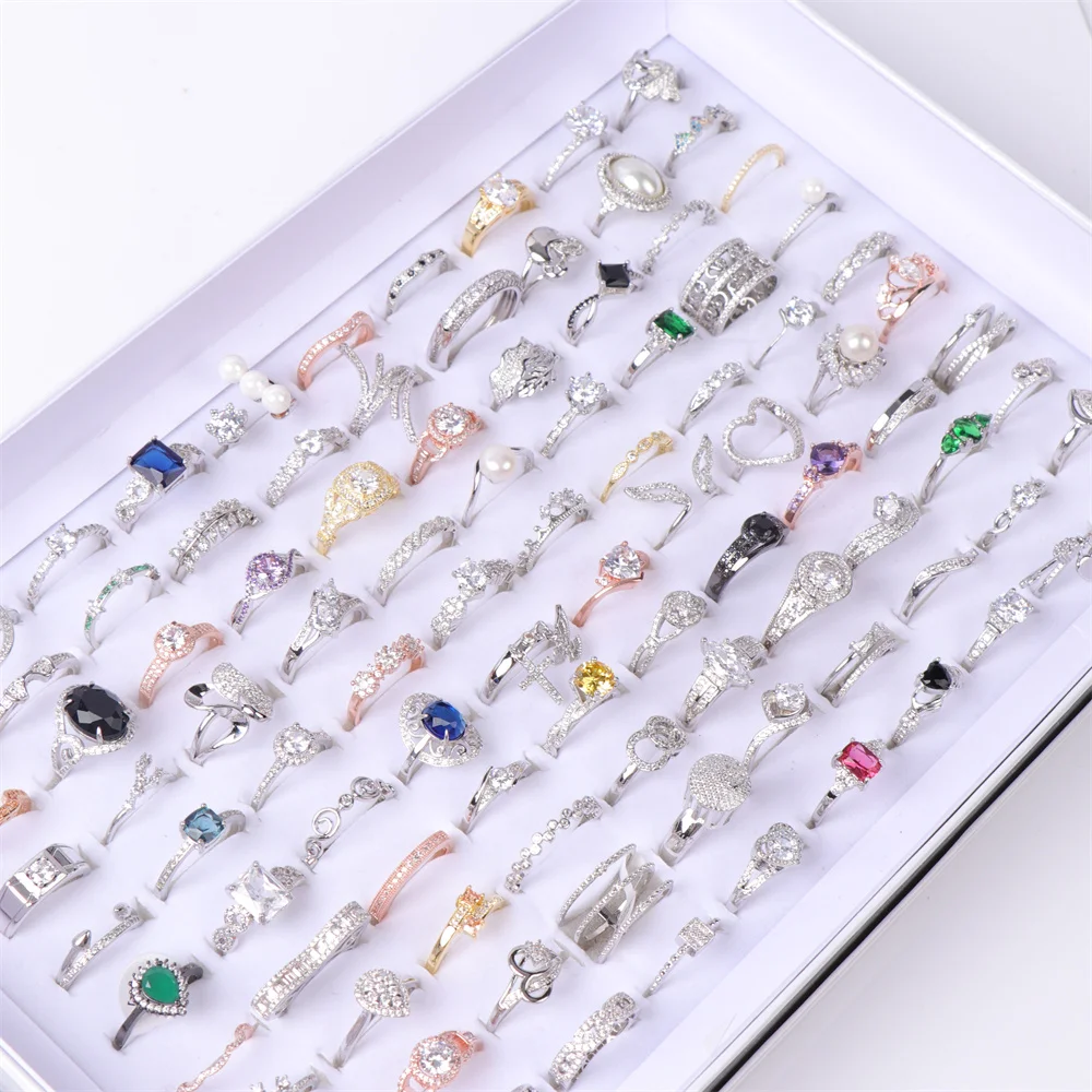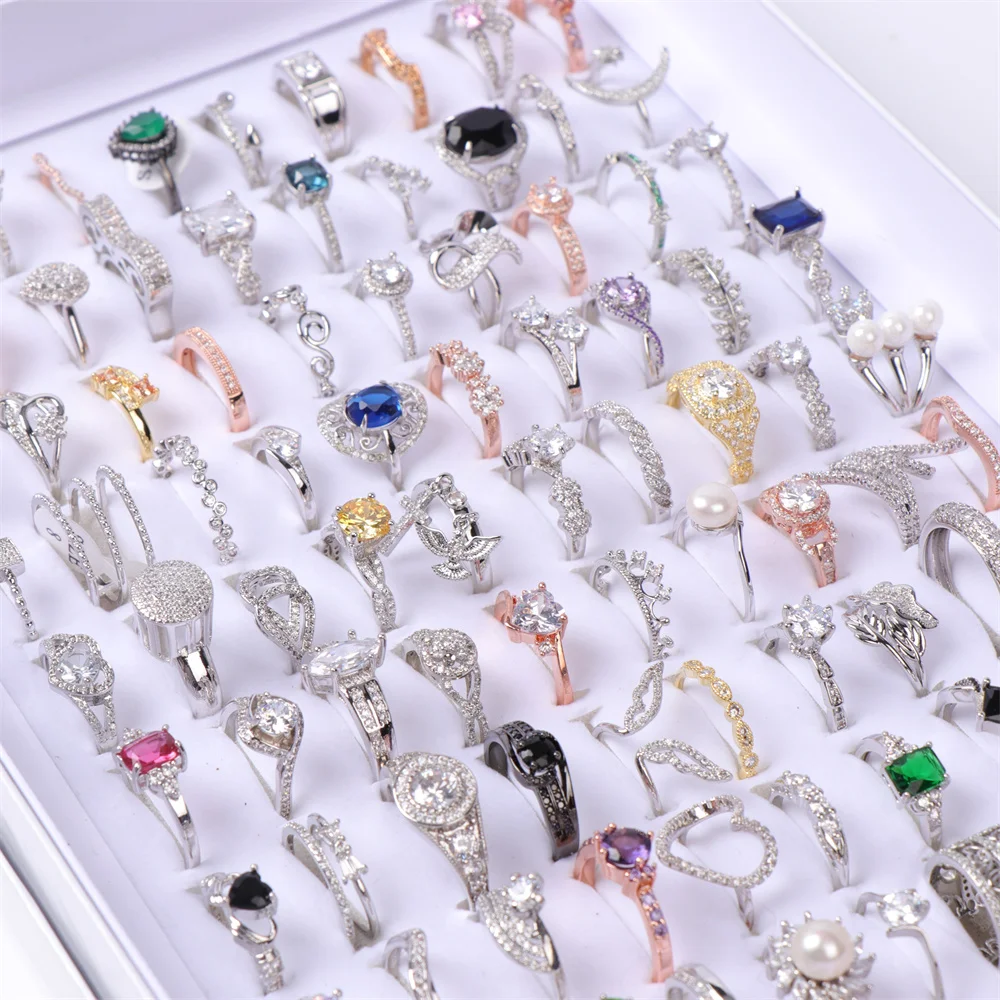 Оптовая продажа 20 шт.лот модные микро-инкрустированные красочные циркониевые кольца для женщин Смешанные стильные высококачественные Свадебные обручальные ювелирные изделия