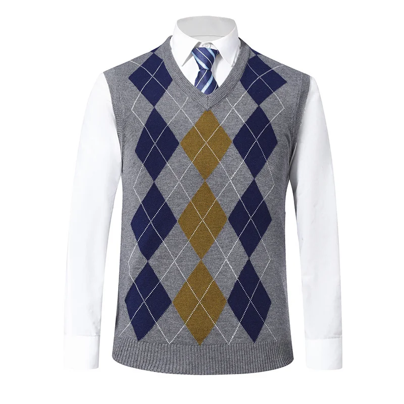 Мужской трикотажный свитер без рукавов, с V-образным вырезом