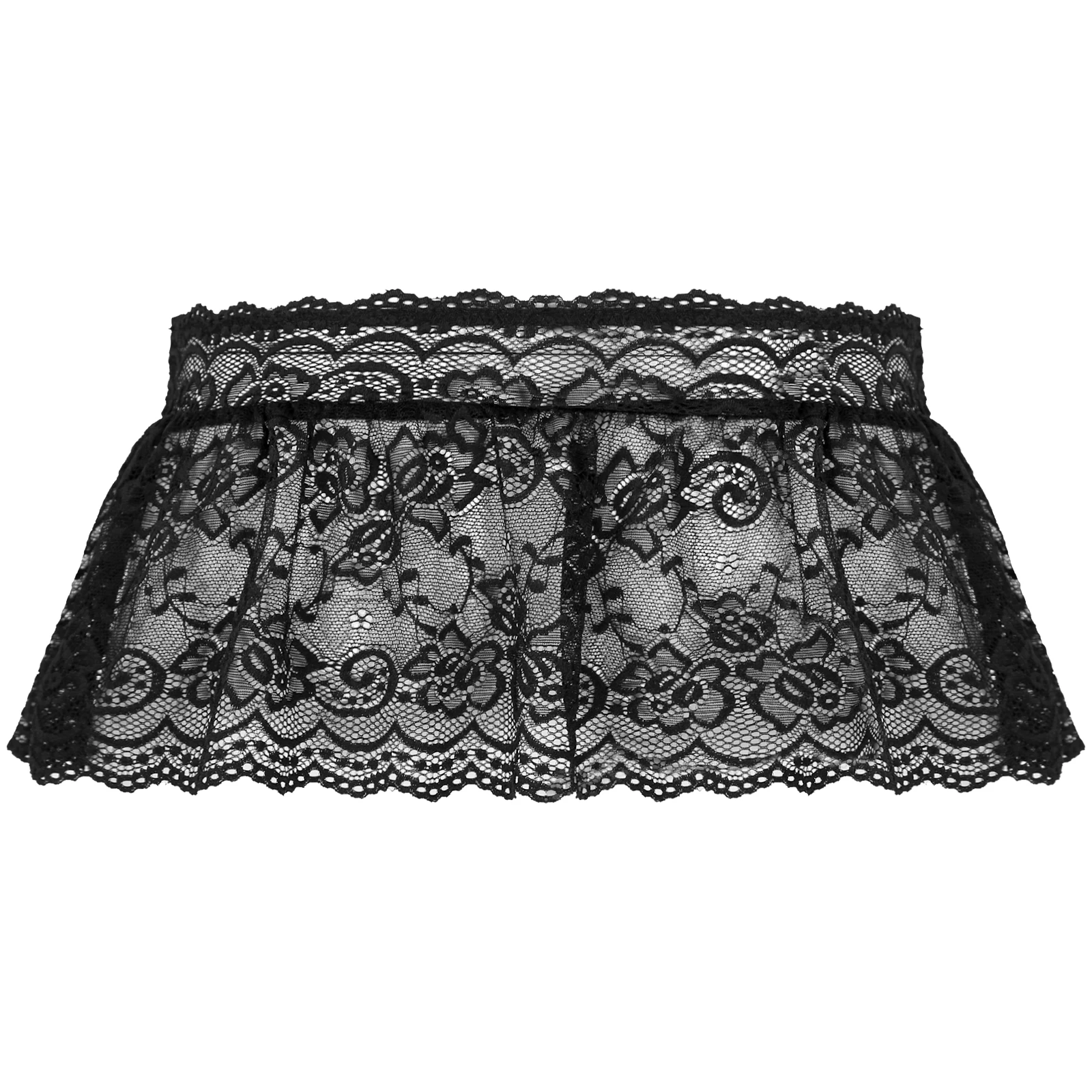 Прозрачная Кружевная мини-юбка для мужчин, женская одежда для сна, ночная рубашка, юбка с оборками и цветочным узором, юбки с бантом и заниженной талией
