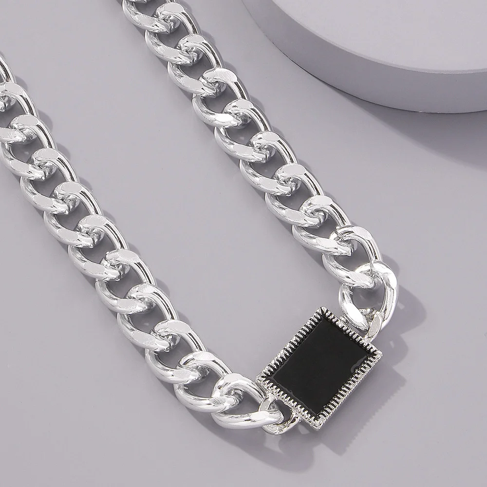 Чокер IngeSight.Z короткий женский и мужской, уличное толстое ожерелье квадратной формы с геометрическим узором в стиле панк, Ювелирное Украшение для шеи, черный цвет