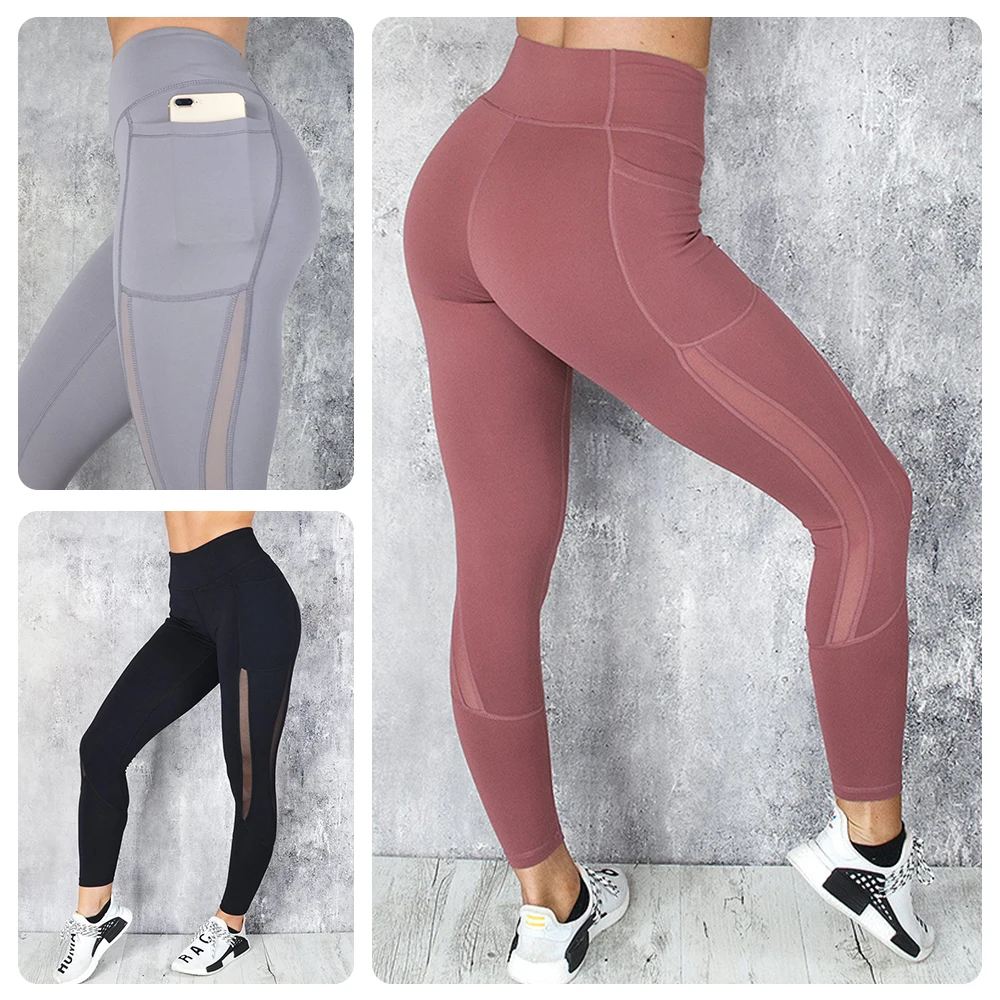 Спортивные Леггинсы для йоги, Женские однотонные штаны с высокой талией для подтяжки бедер, леггинсы для фитнеса, тренажерного зала, бега, Леггинсы пуш-ап с карманами
