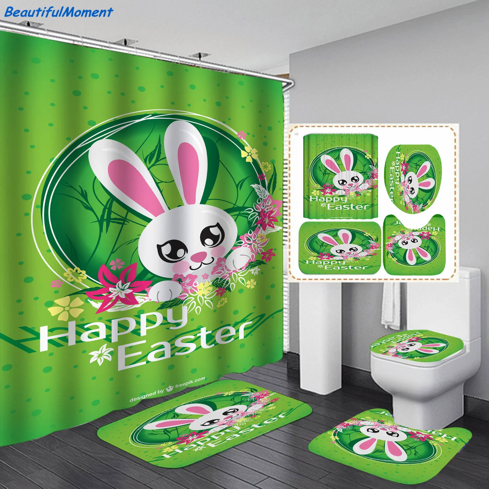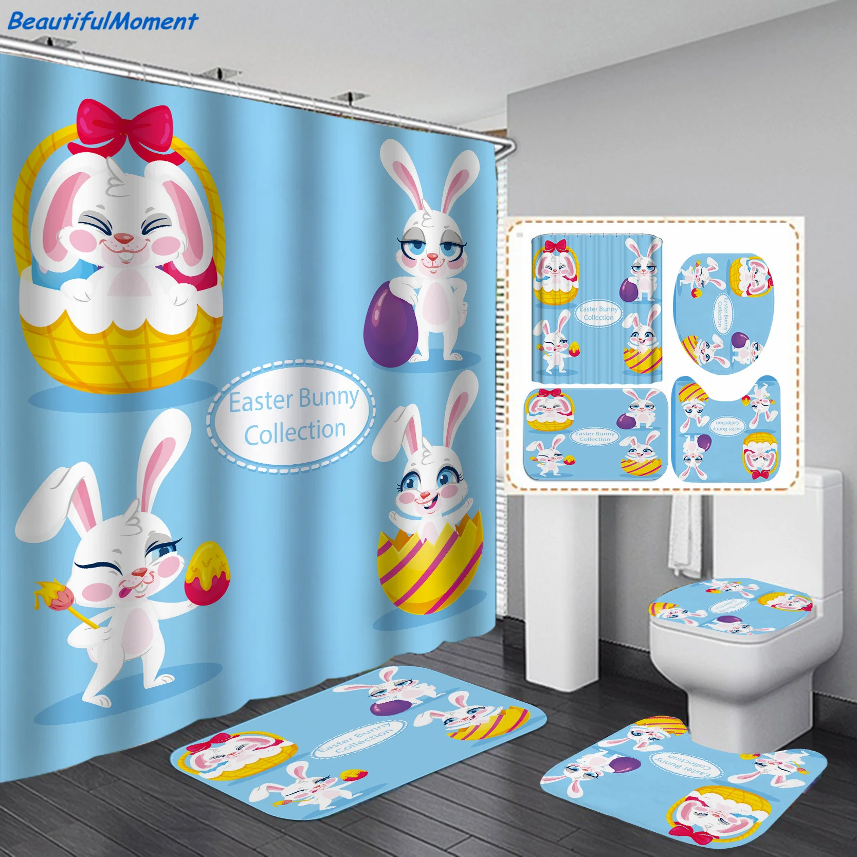 Пасхальные смешные яйца, 4 шт., розовые и голубые яйца, счастливый Пасхальный душ, фотообои с нескользящим ковриком, крышка для унитаза