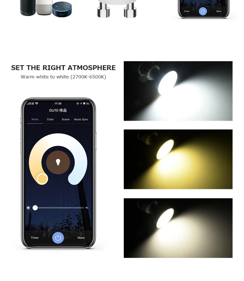 Умсветильник лампочка GU10 с поддержкой Wi-Fi и голосовым управлением, 110 В220 В, 7 Вт, 9 Вт