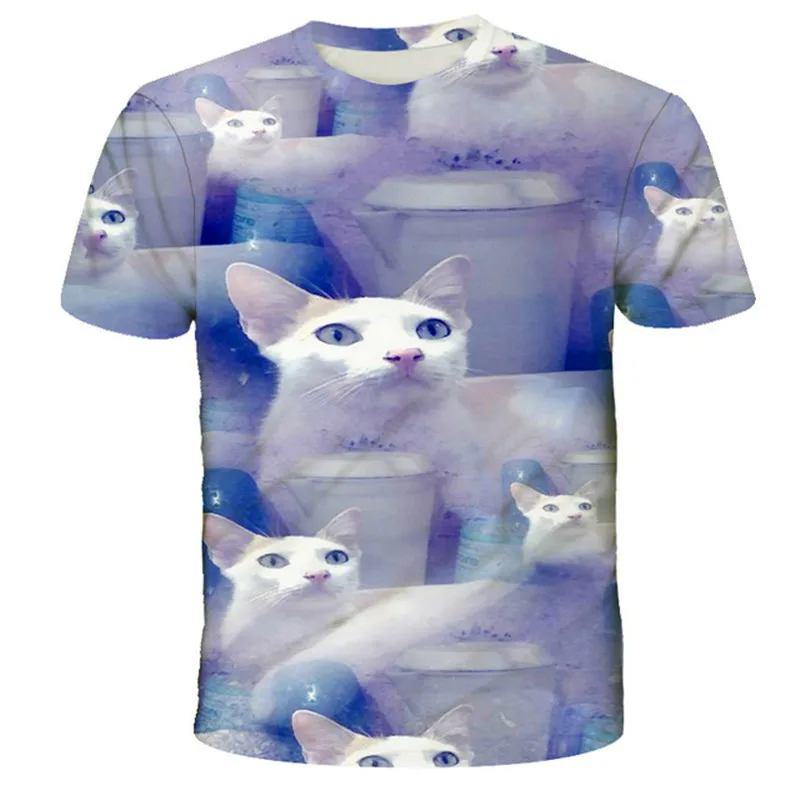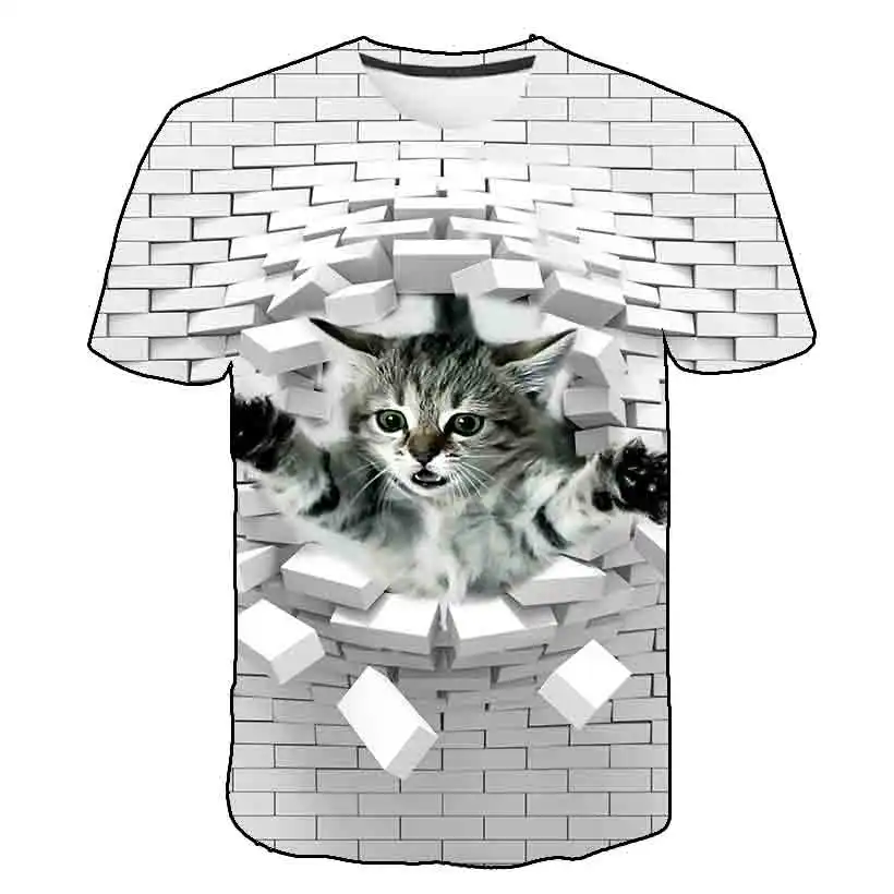 Футболки, одежда для девочек, Детская футболка с 3D изображением животных для мальчиков, детские летние футболки с изображением кота, милые забавные детские футболки, топы, женские футболки