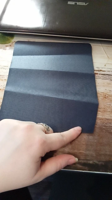 Это меньше, чем я ожидал, очень хорошо. В упаковке он складывается пополам и отметка остается. Это прямоугольник, а не квадрат, как показано на рисунках.