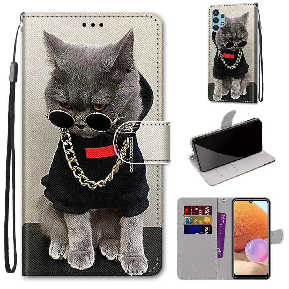 Раскрашенный кожаный флип-чехол для телефона Samsung Galaxy A02, A0...