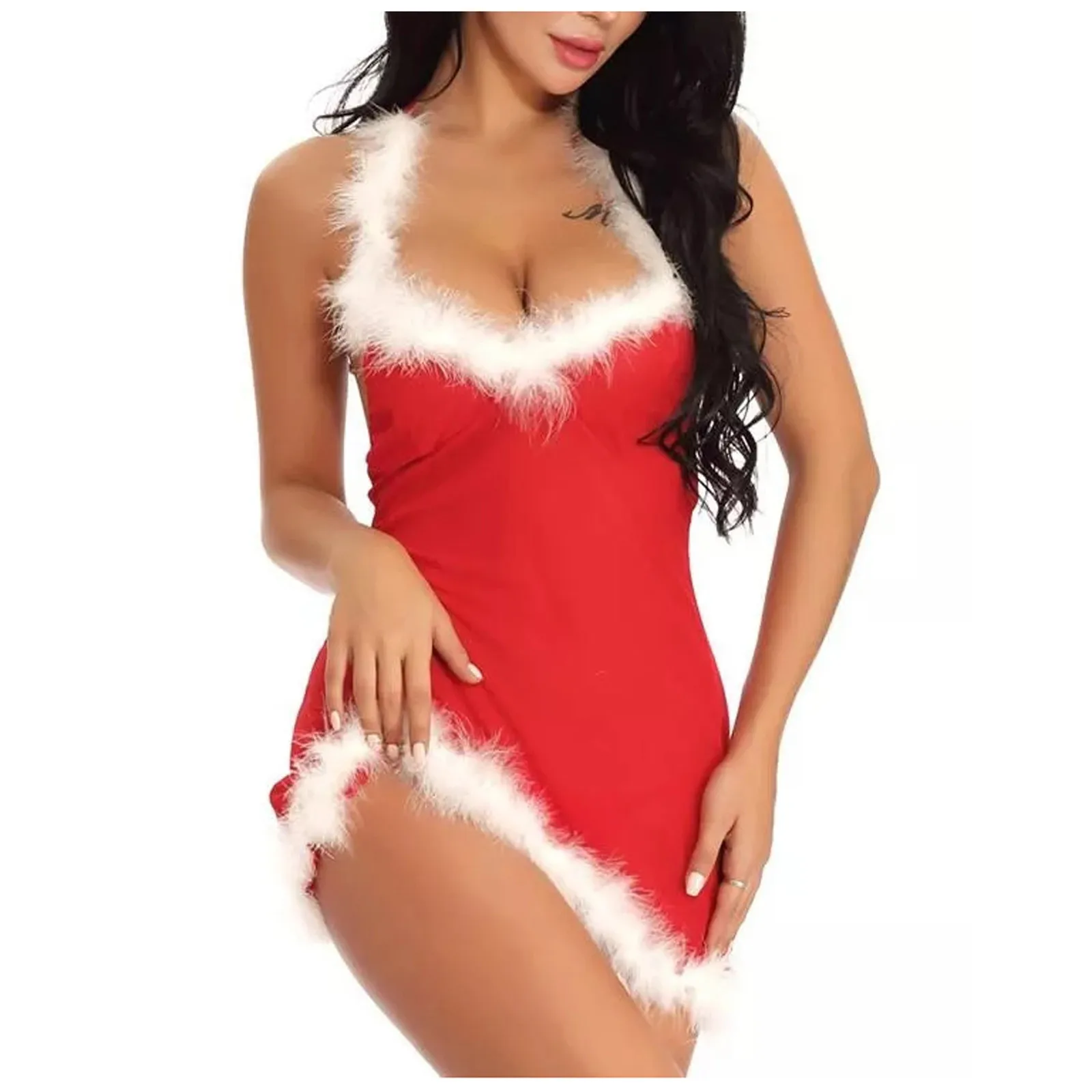 Женское сексуальное рождественское красное нижнее белье, цельная юбка + стринги, ночная рубашка, нижнее белье
