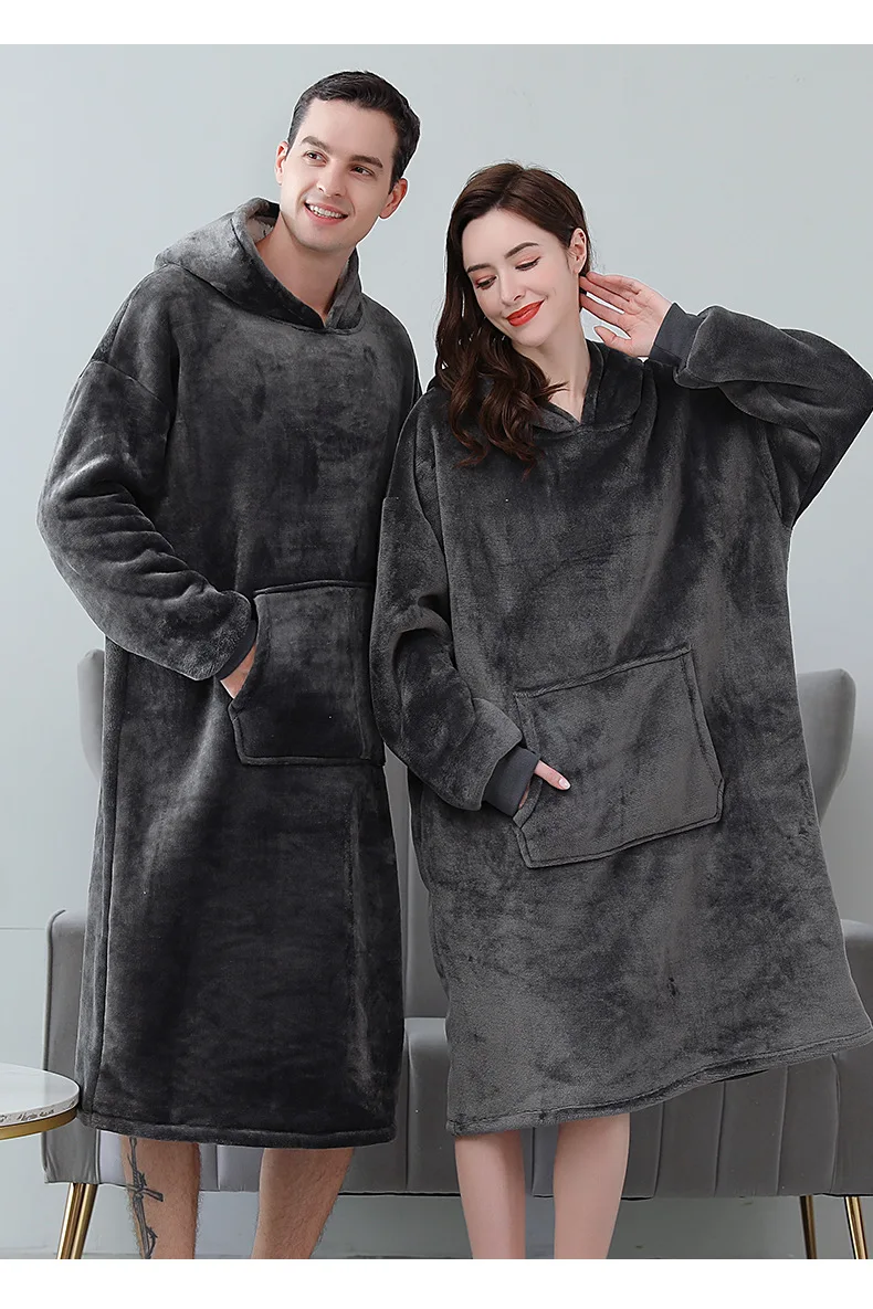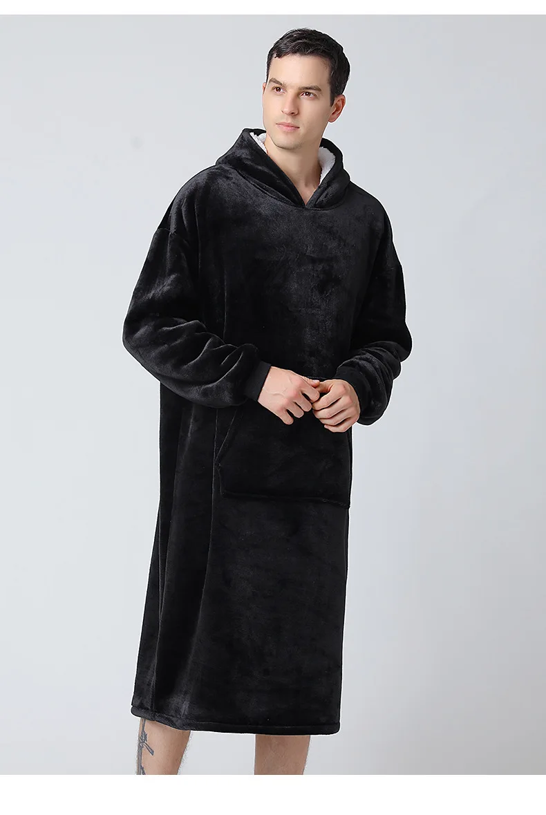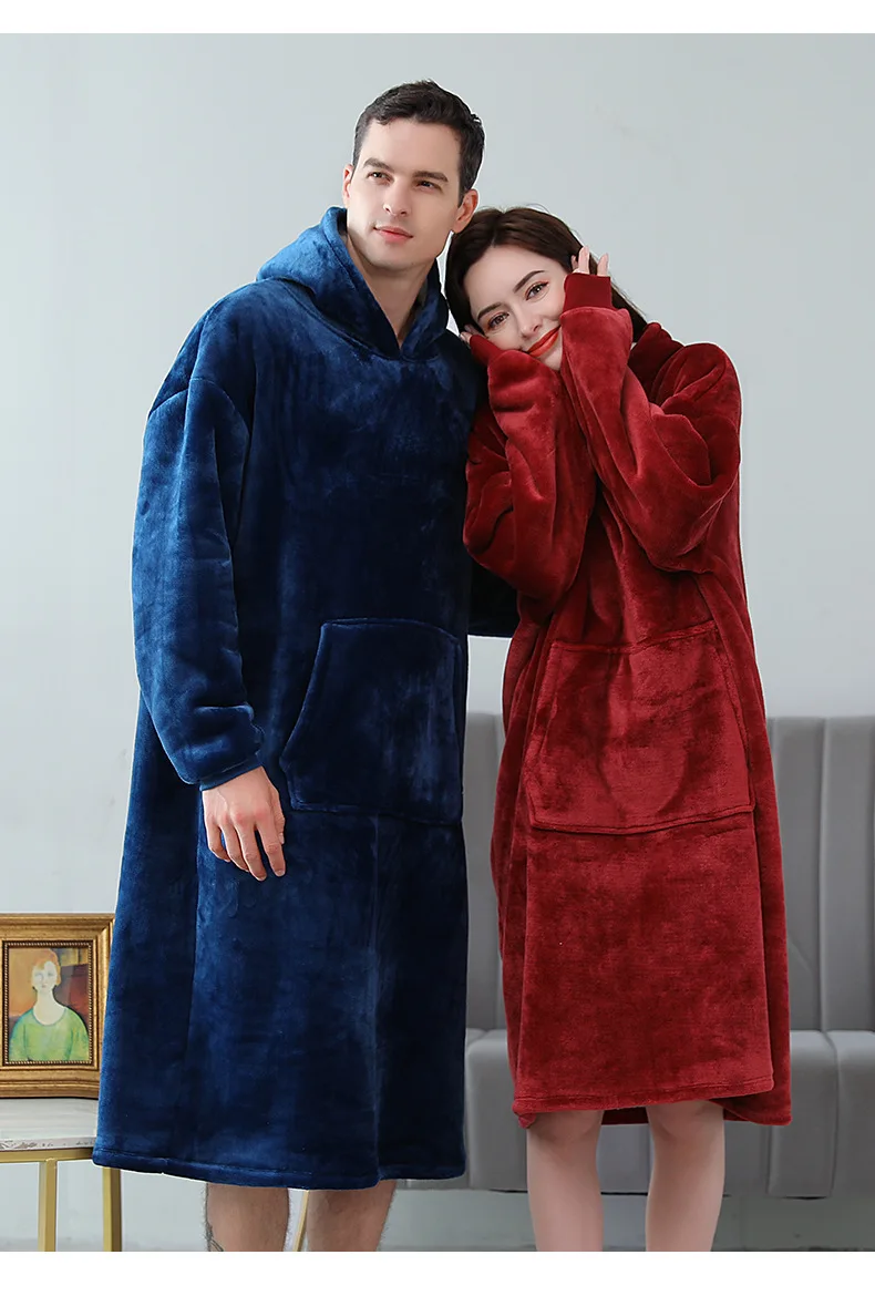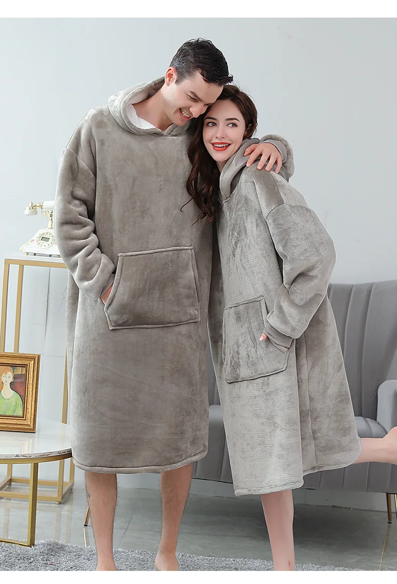 Халат фланелевый для мужчин и женщин, ночное белье, кимоно, Халат с капюшоном, домашняя одежда для сна, белье из кораллового флиса, зима