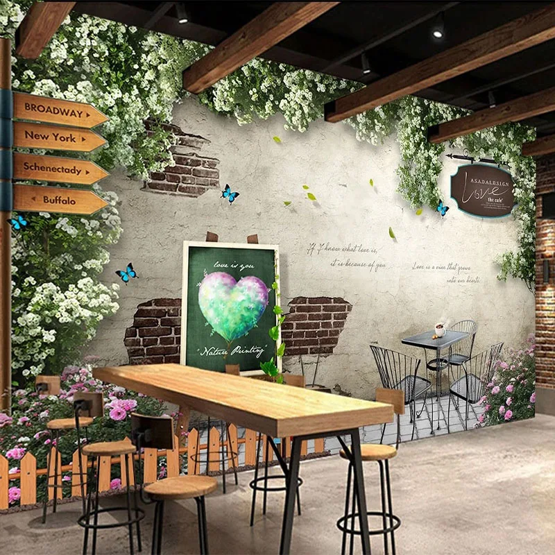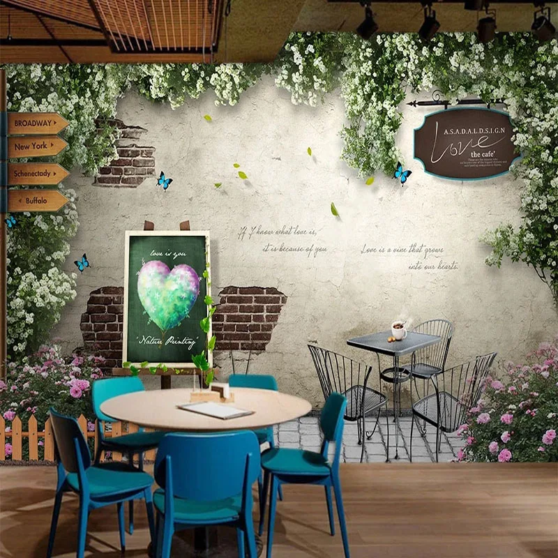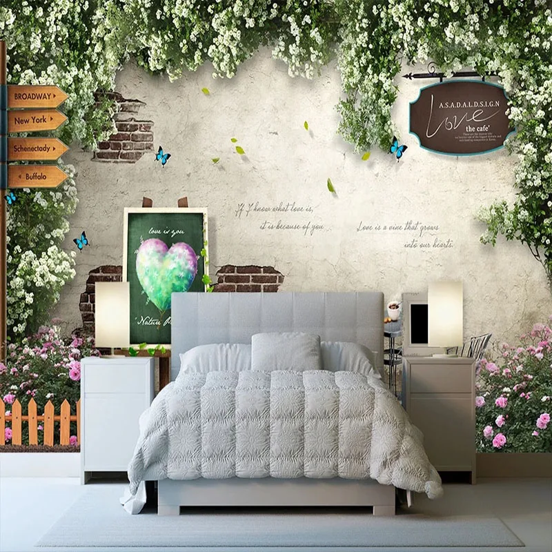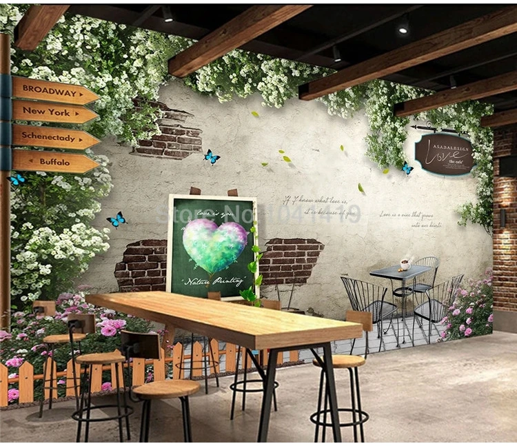 На заказ любой размер обои 3D стерео Роза цветы кирпичная стена Фреска тема отель свадьба фон Настенный декор фото фрески