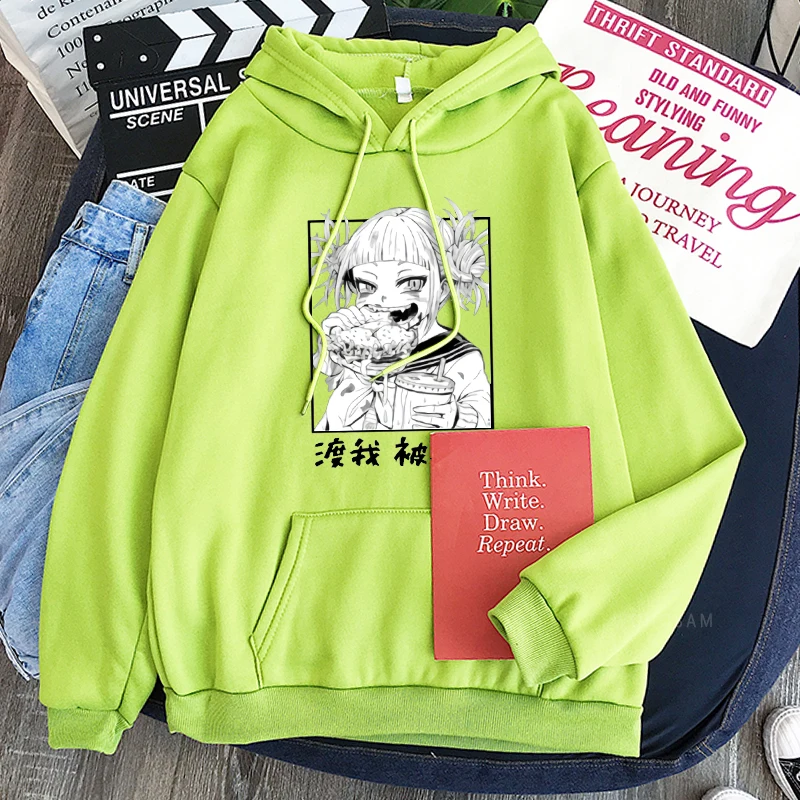 Толстовки с капюшоном из аниме Моя геройская Академия, кавайная девушка, едущая гамбургер, химико Тога для мужчин и женщин, свитшоты с длинным рукавом для манги в стиле Харадзюку