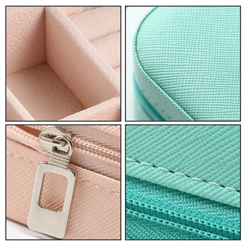 Портативная шкатулка для ювелирных изделий на молнии, кожаный Органайзер для хранения ювелирных изделий, дисплей, Дорожный Чехол для ювелирных изделий, коробки Joyeros Organizador De JoyasРазмер: 10*10*5СмВес: 0,14 кгМатериал: импортная Экологичная искусственная кожа
