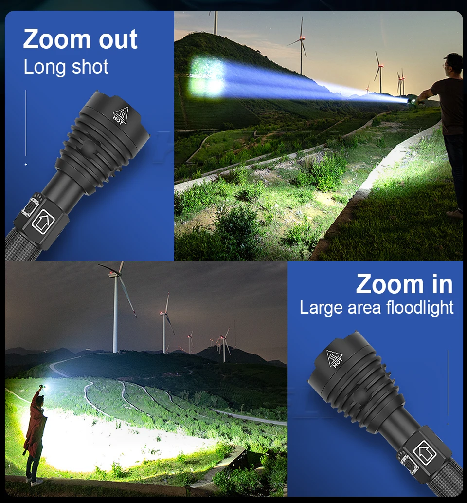 450000LM XHP160 Самый мощный светодиодный фонарик USB Перезаряжаемый светодиодный фонарик CREE XHP90 Тактические фонари 18650 XHP70 Лампа для кемпинга