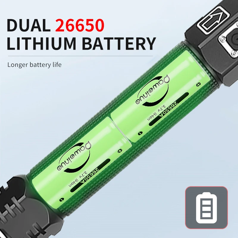 •Мощность: 2 аккумулятора 26650 или 2 аккумулятора 18650