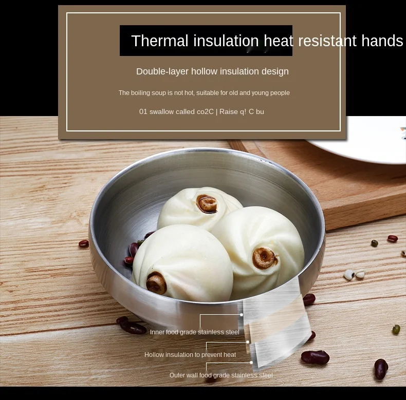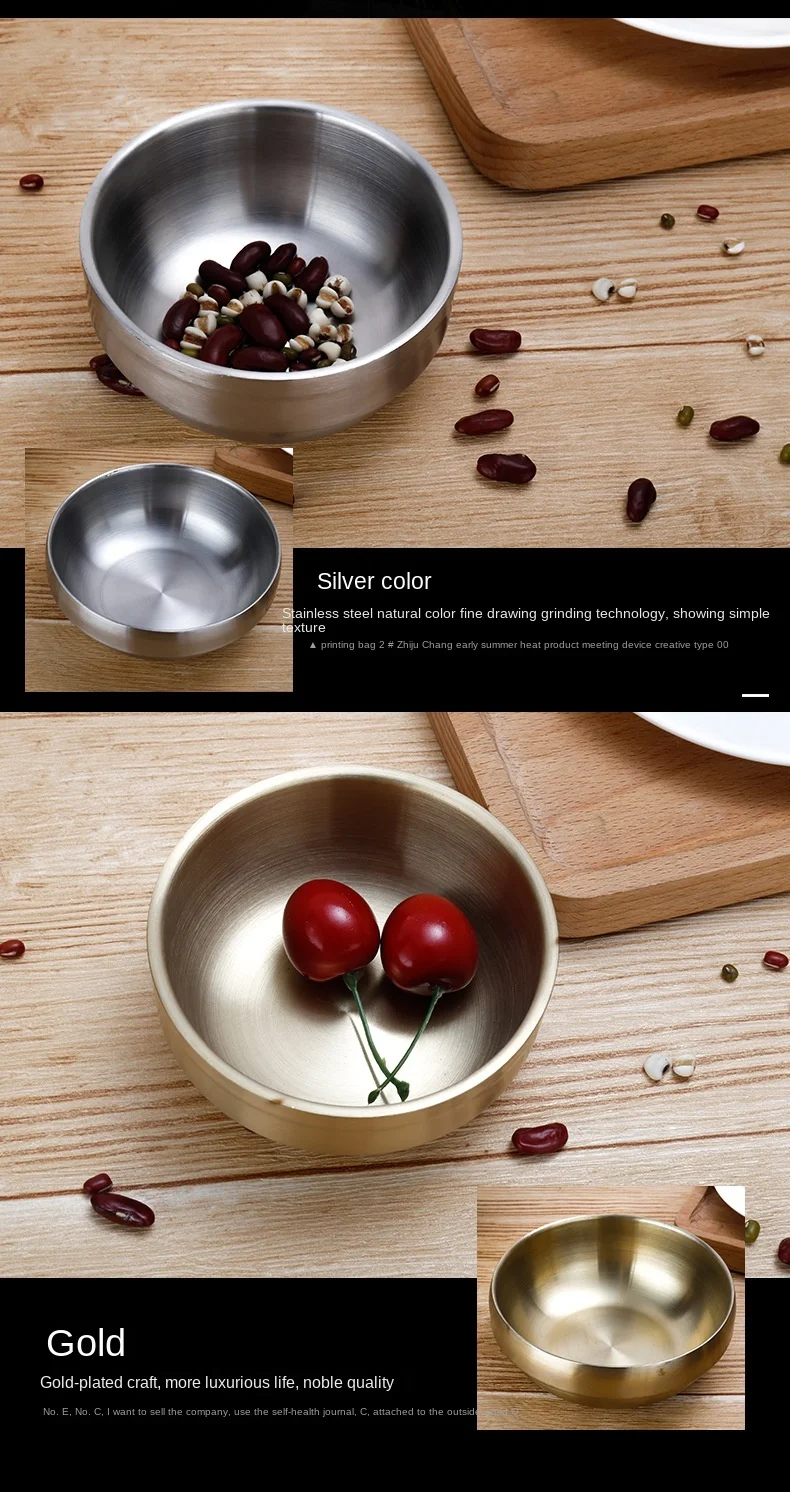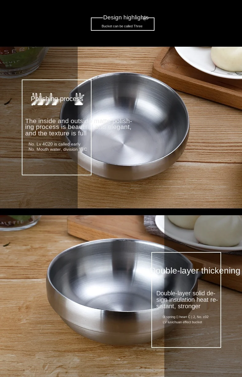 Двойная Толстая миска из нержавеющей стали, Корейская полированная миска из нержавеющей стали 304 для лапши и супа, набор миски для риса
