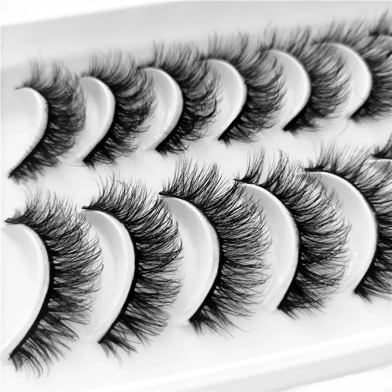 Новинка, 10 пар, ручная работа, 3d норковые ресницы, короткие Мягкие Накладные ресницы, крестик, грязные плотные натуральные ресницы для наращивания, набор для макияжа, Cilios