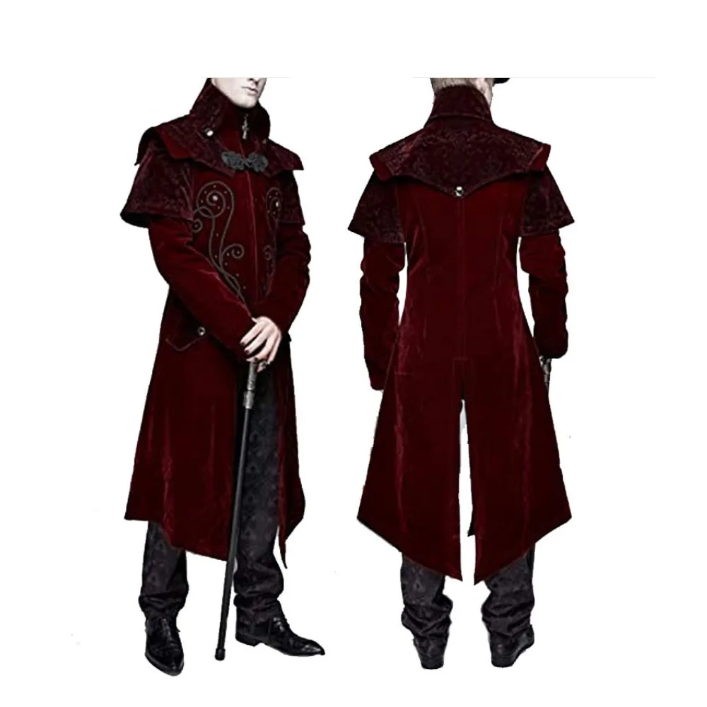 Костюм Рыцаря викинга в средневековом стиле унисекс, широкий красный бархатный костюм в стиле стимпанк, с замком, дворянным дворником, зимняя куртка с дьявольским вампиром, смокинг