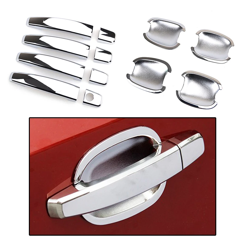 Состав: 8 чехлов для дверных ручек или 4 крышки для дверных чашЦвет: блестящая отделкаМатериал: хромированный АБС-пластик