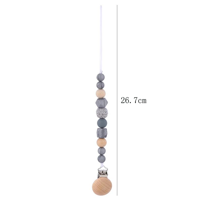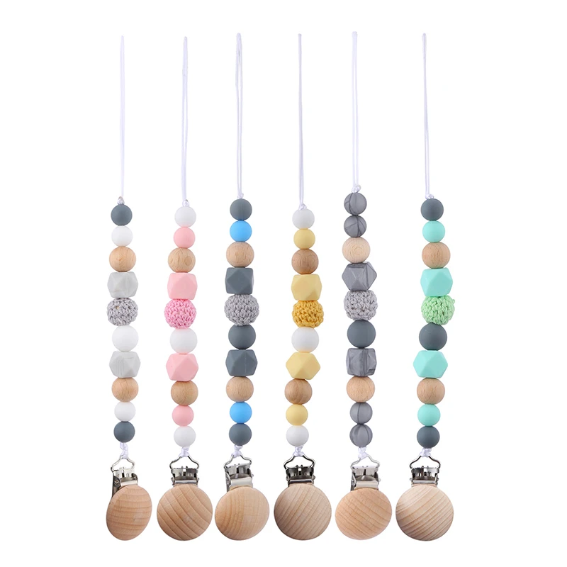Зажим для детской соски, с силиконовыми бусинами, деревянный, цепоч...