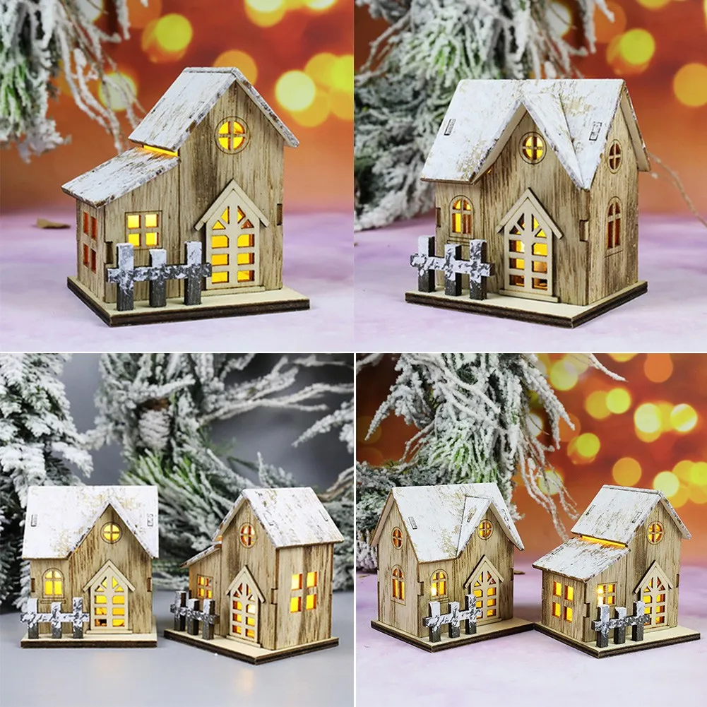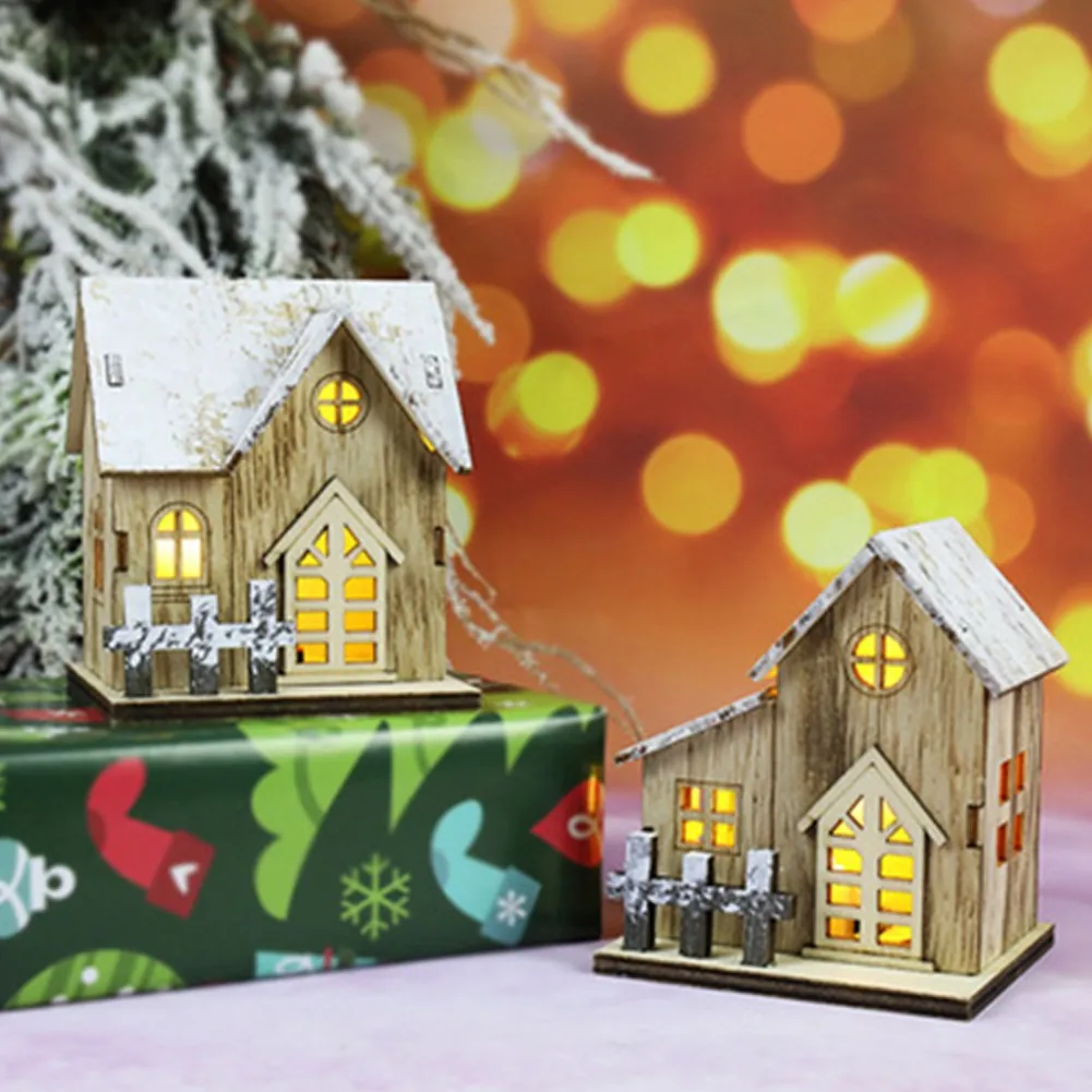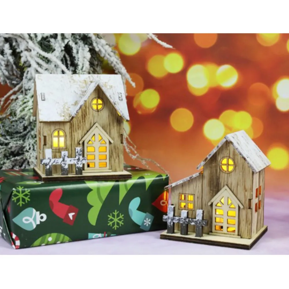 Рождественский светодиодный светильник, деревянный дом, светящаяся кабина, рождественские украшения для дома, сделай сам, рождественская елка, украшения для детей