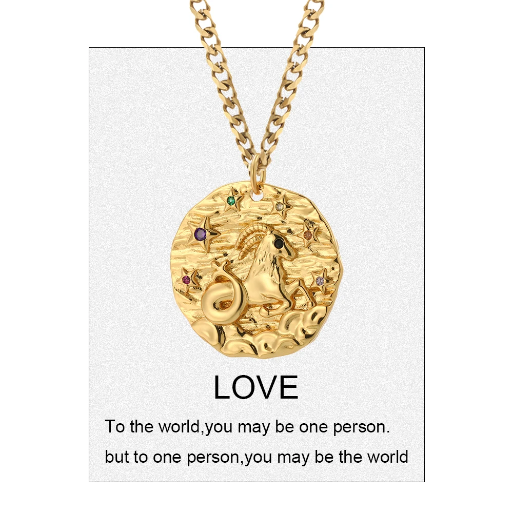 Женское Ожерелье 12 знаков зодиака, золотистый амулет, винтажный женский кулон с монетами и медными вставками из фианита, модные ошейники в стиле панк для друзей
