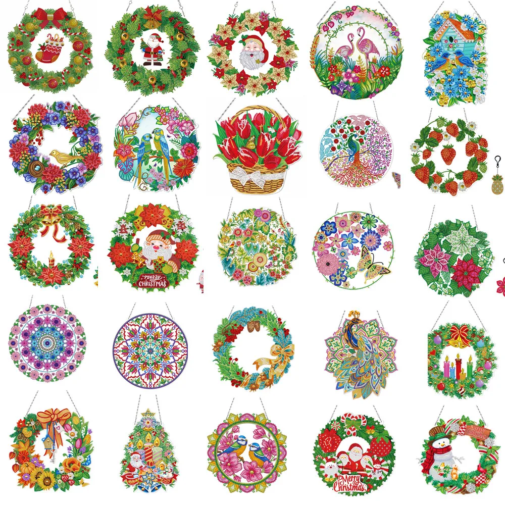 Алмазная живопись Рождественский венок со светодиодсветильник кой 5D Сделай Сам стразы мозаичная гирлянда вышивка брелок Подвеска Рождественский Декор для двери