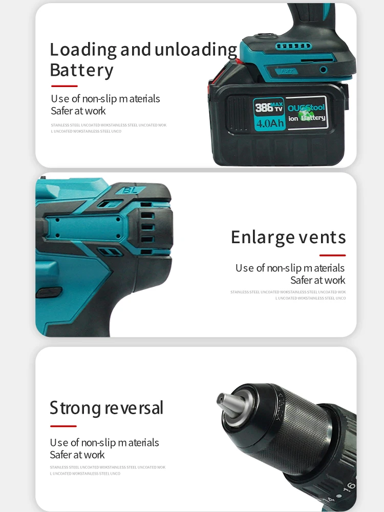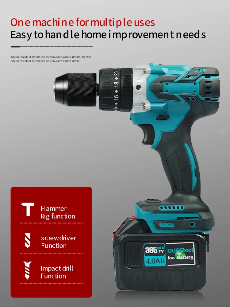 Особенности:-Функция сверления молотка 3 в 1/функция отвертки/функция плоского сверла.> Легкий, компактный.-20 + 3 режима, обеспечивает 20 режимов крутящего момента и 3 режима сверления Для высокоточной работы.-Встроенный светодиодный светильник, обеспечивает освещение в темных пространствах во время работы.-Эргономичная удобная ручка обеспечивает идеальный баланс и контроль инструмента.-Переключатель вперед/назад/замок, поддержка движения вперед/назад и безопасная блокировка.