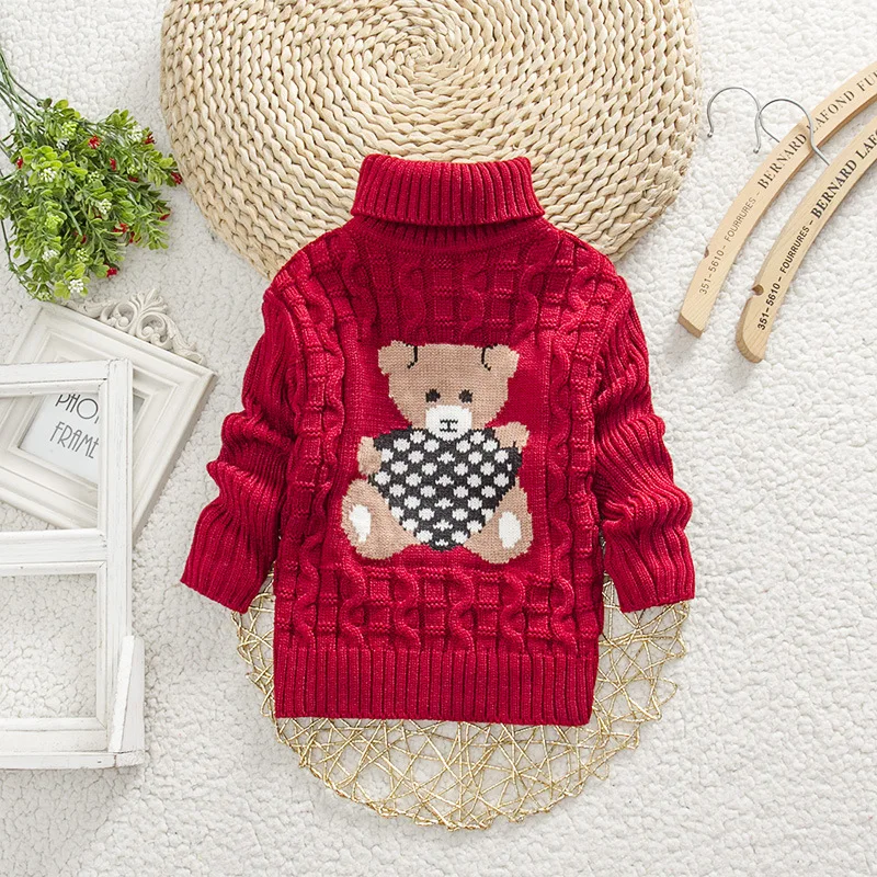 Свитер с медведем, зима 2021, для мальчиков и девочек, детская плот...