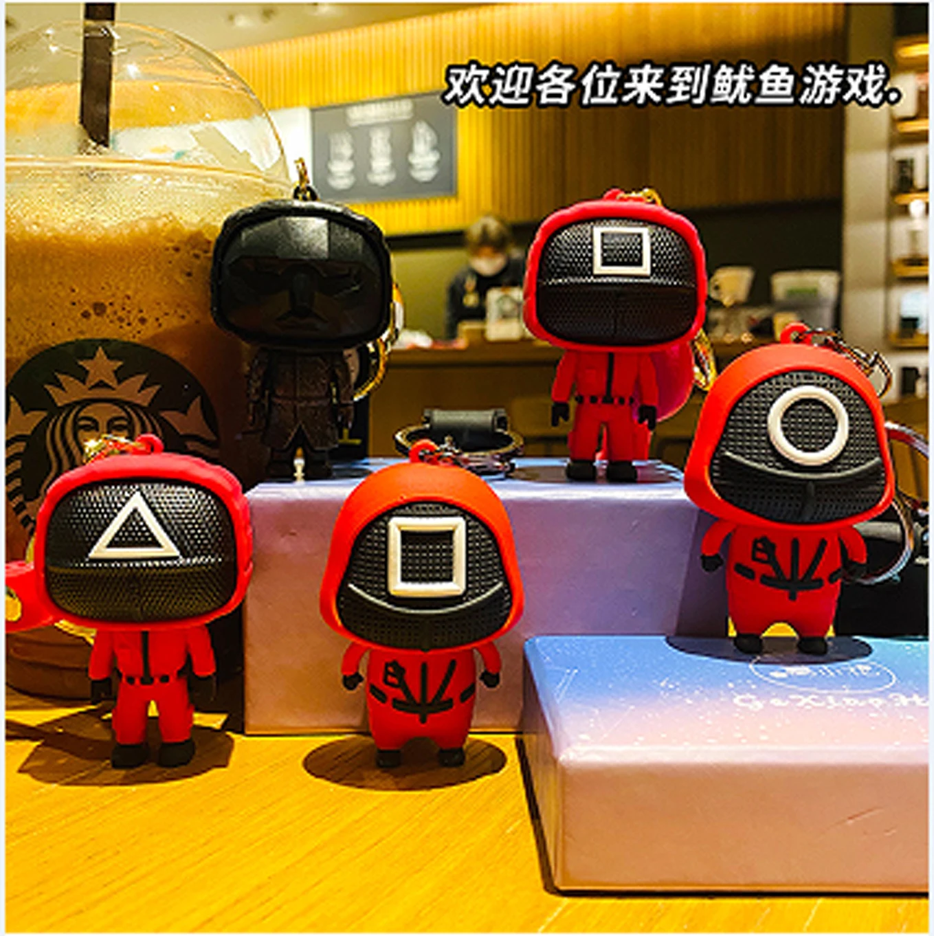 Брелок с подвеской в виде 3d-фигурок из игры кальмар, маски, аксесс...