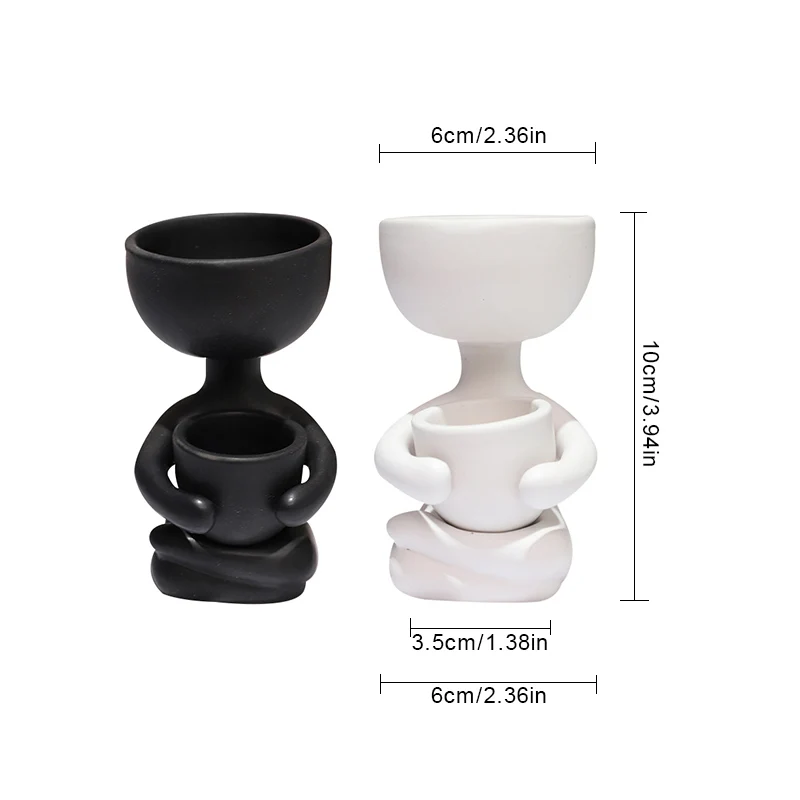 B:REsinРазмер: 6*10 см/8*10 смВес:Повод: дом/цветочный магазин/бар/офис/подарокМатериал: горшок для растений изготовлен из высококачественной керамики, прочный в использовании.Размер: 2.4x3.9 дюймов/3,1*3,9 дюймовДренажное отверстие: эффективно отводит излишки воды от растительного горшка и защищает поверхности горшка от пятен.Креативный Мини милый цветочный горшок в форме человека. Отлично подходит для мини-суккулентов и кактусов или декоративных свечей.Украшение для дома и идеальный подарок: это отличный подарок для ваших друзей, которым нравится посадка или животное; Подходит для украшения дома, и он также может сделать ваш офис уникальным.