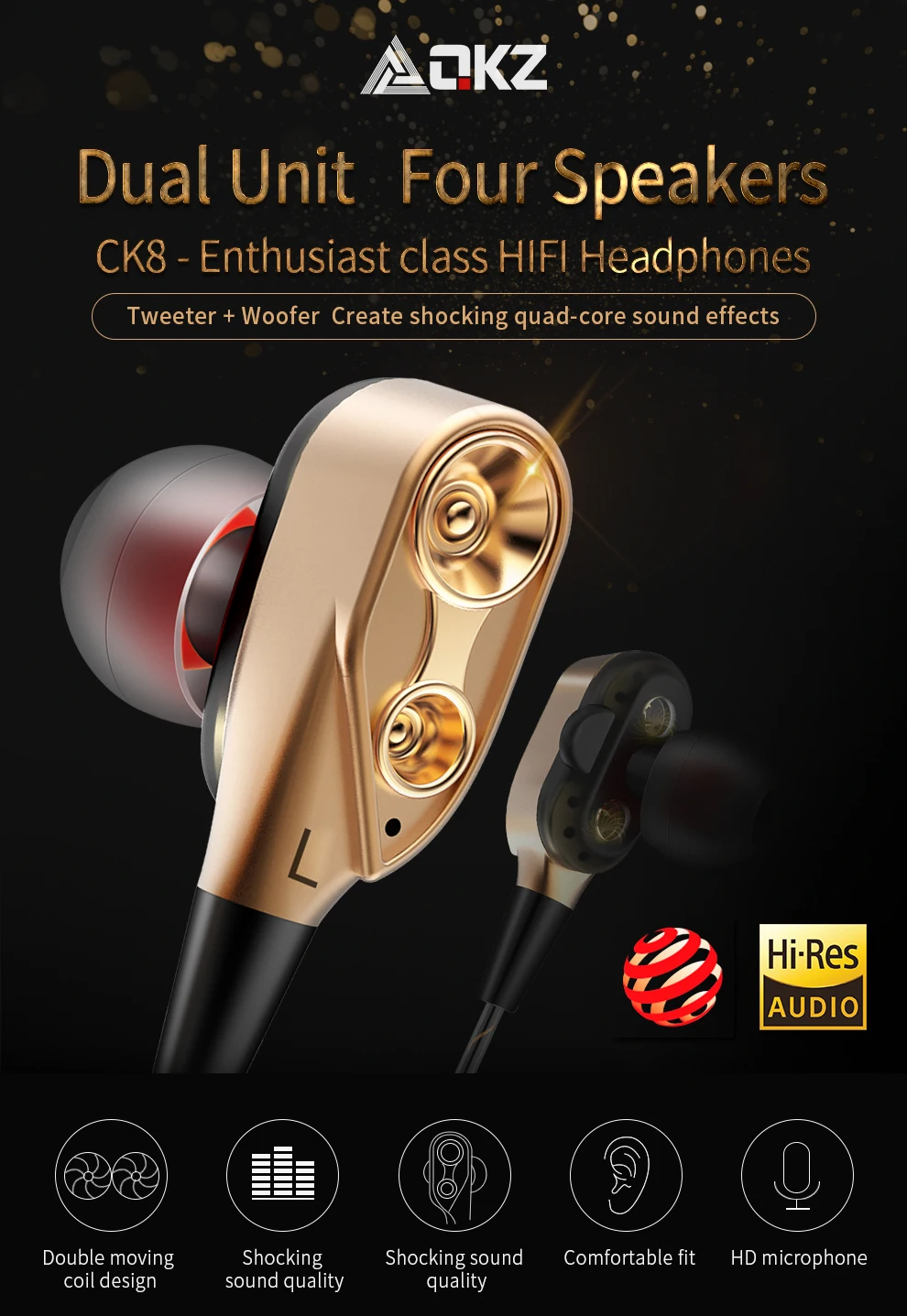 QKZ серии CK наушники с двумя драйверами стерео Бас спортивная Гарнитура для бега Hi-Fi монитор наушники Handsfree с микрофоном CK8 CK7 ck5