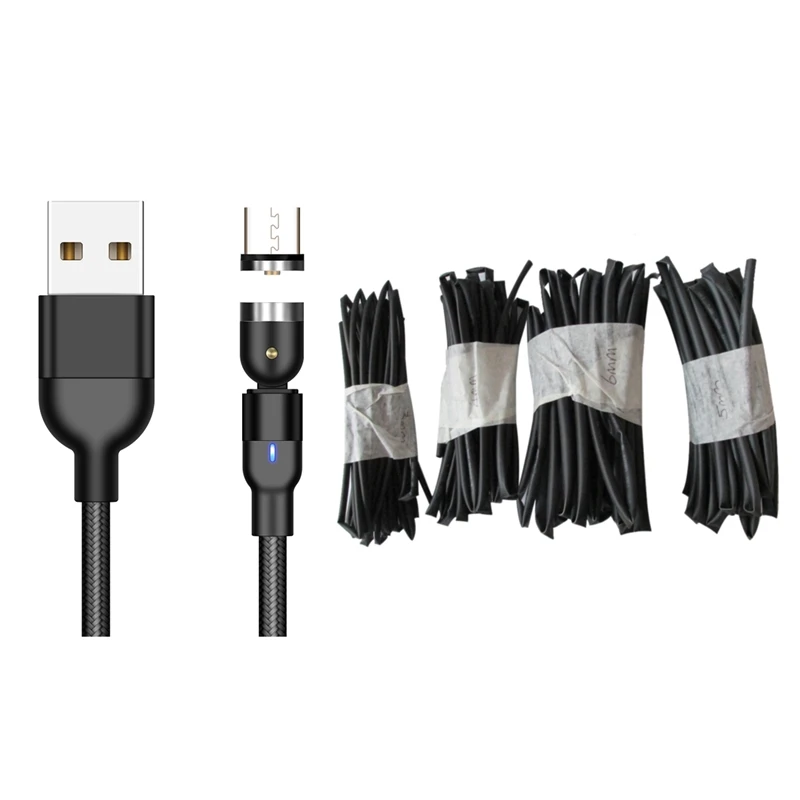 4 шт. термоусадочная трубка с магнитным кабелем 540 Micro-USB Type C для быстрой зарядки телефона