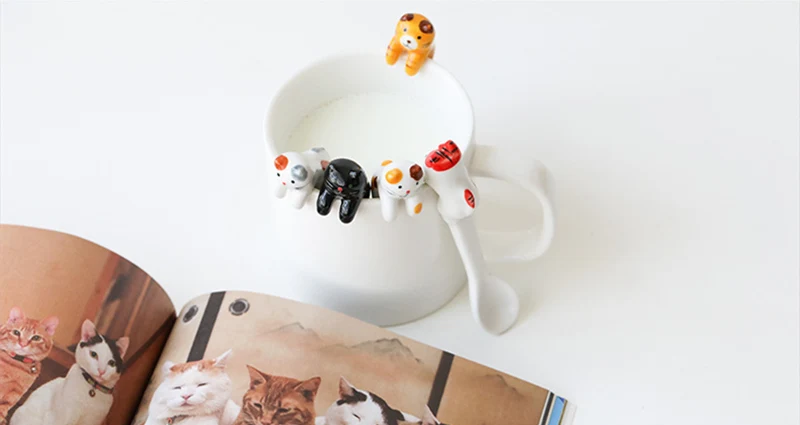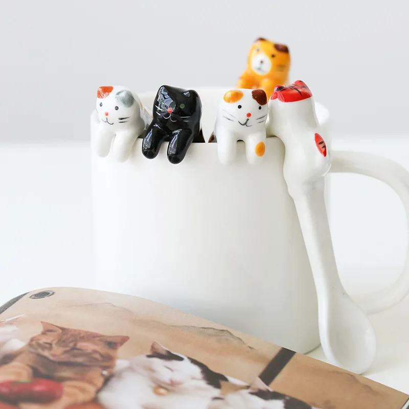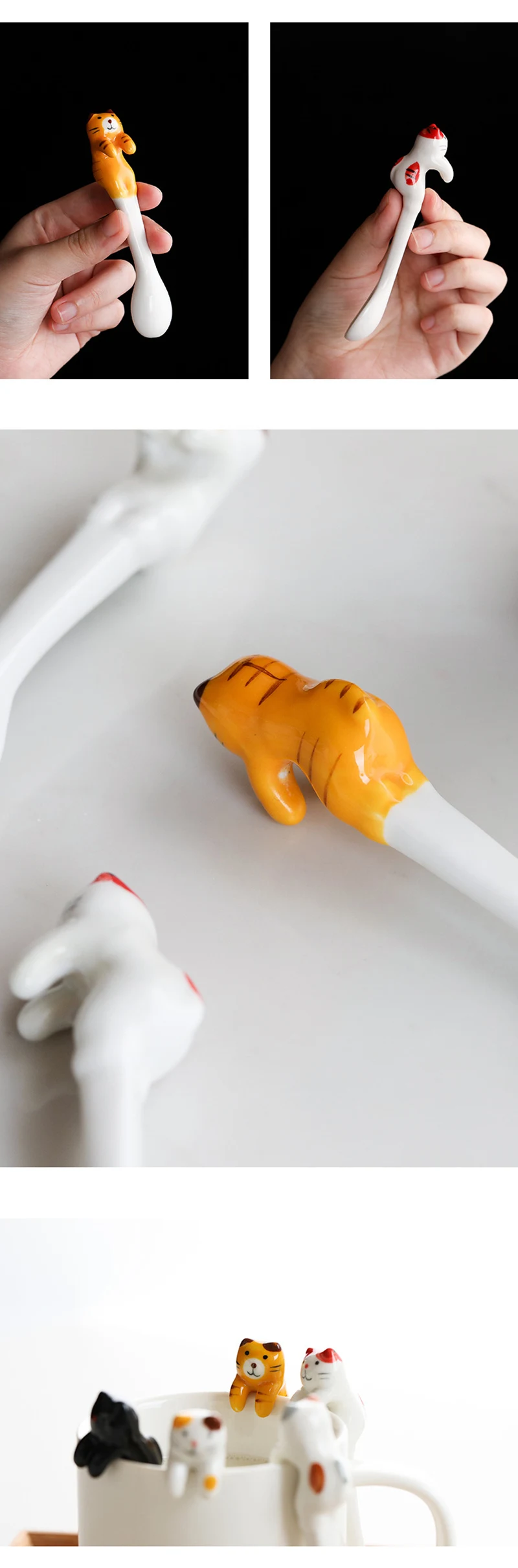 Милая кошачья ложка в виде животных, новинка, подарок, керамические...