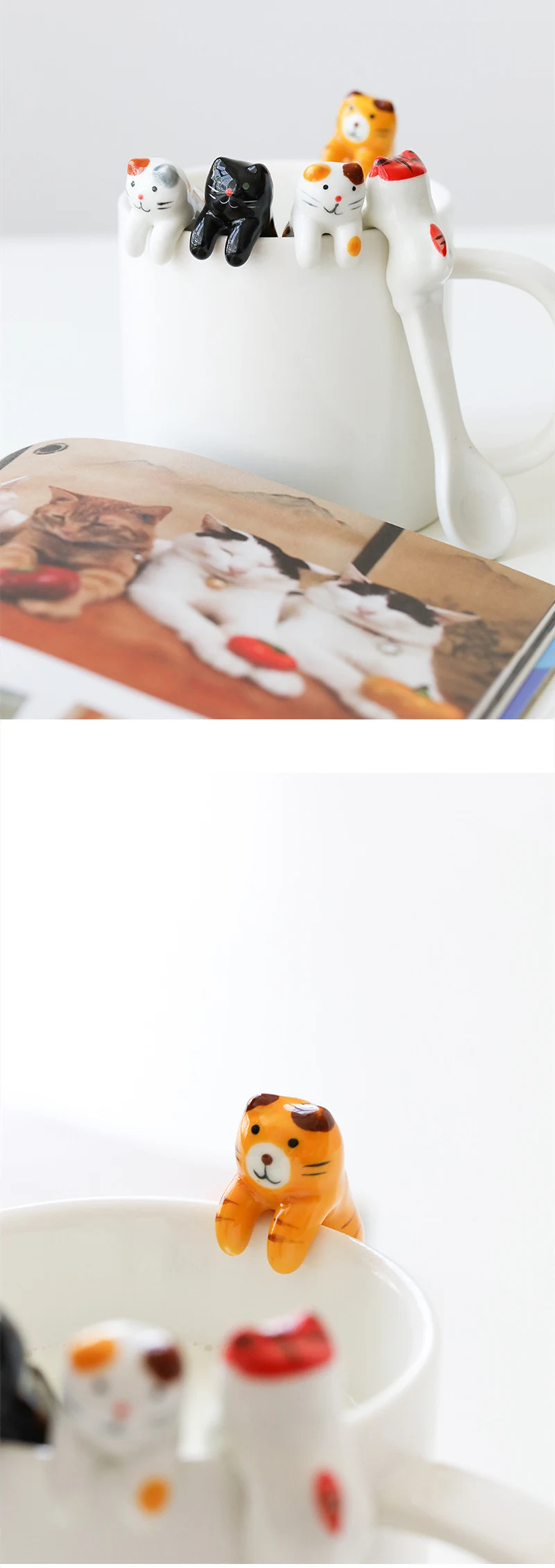 Керамическая подвесная ложка в виде кошек, животных, 5 шт., для коф...