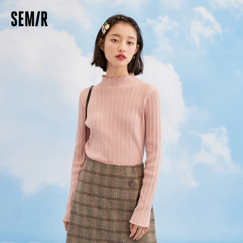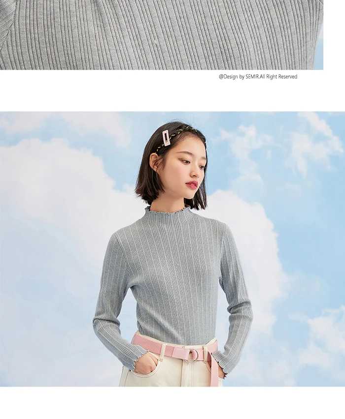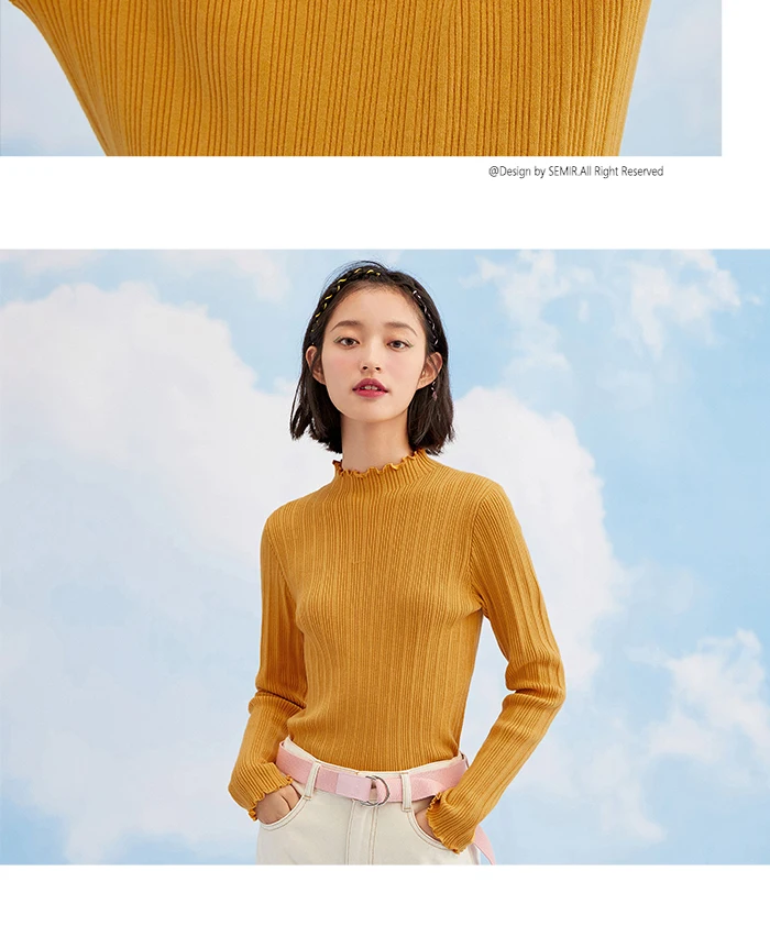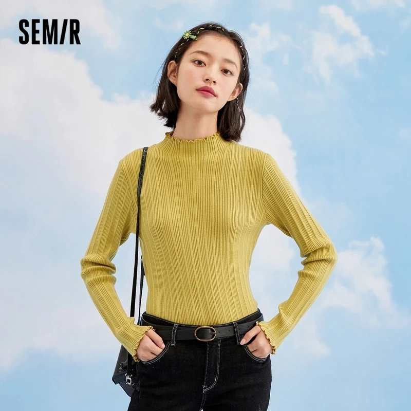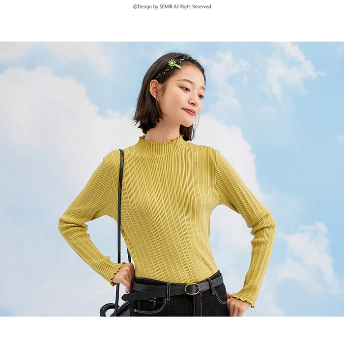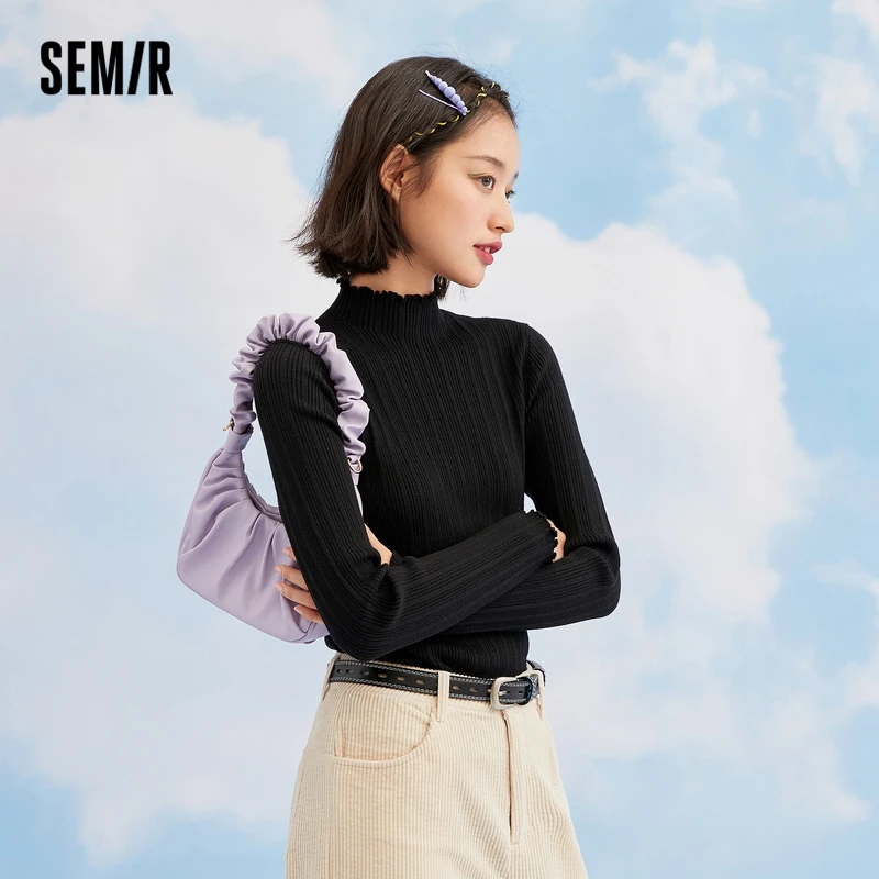 Свитер SEMIR женский с полувысоким вырезом, приталенная рубашка черного цвета, новый осенний свитер с оборками