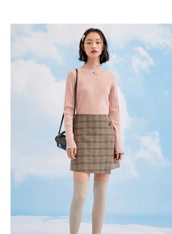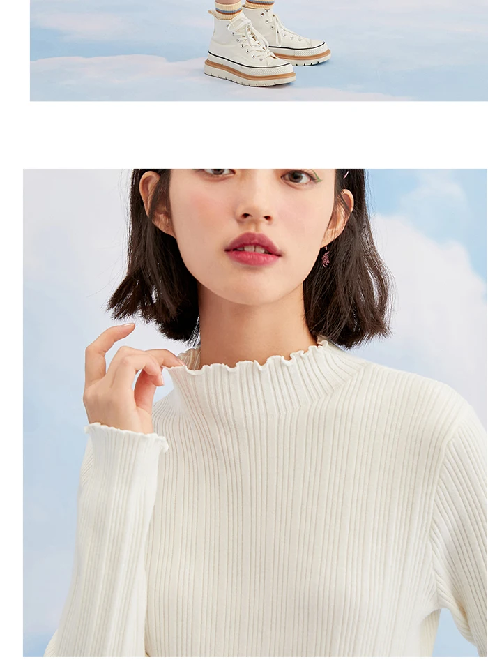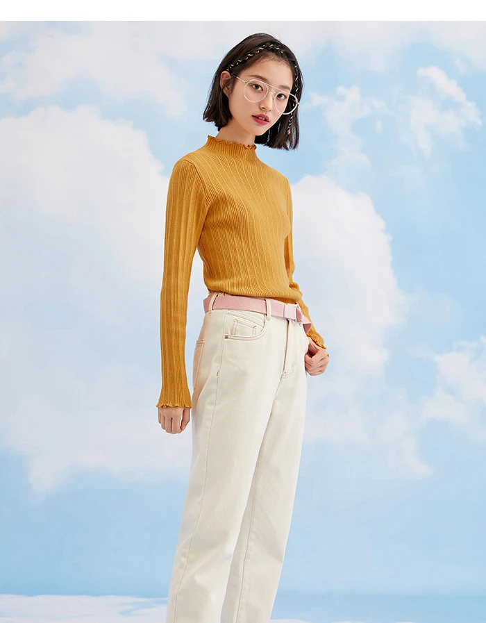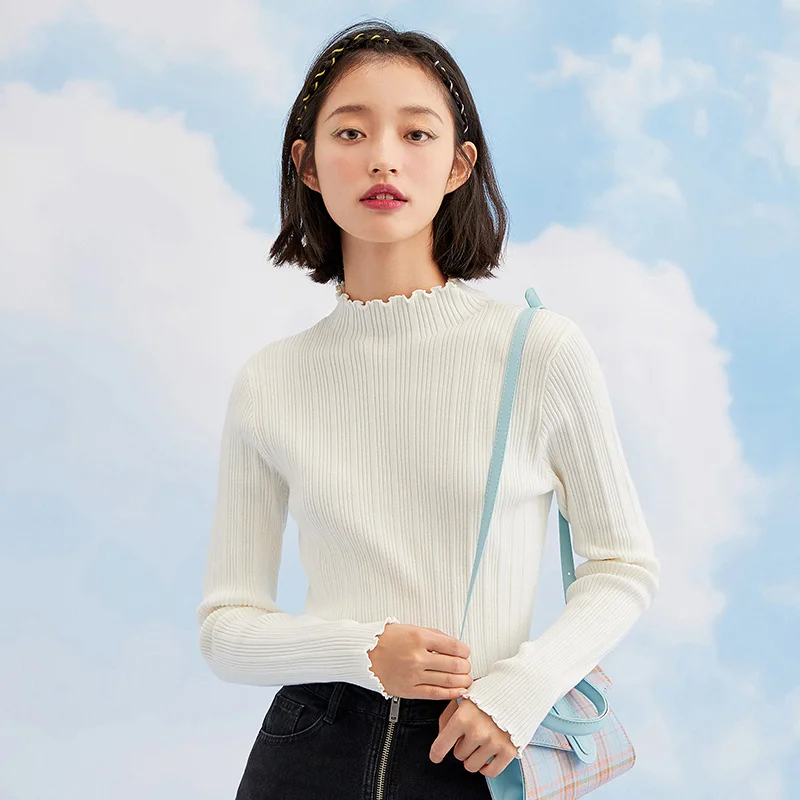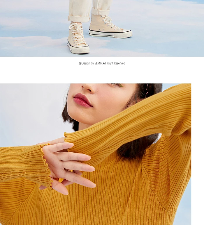 Свитер SEMIR женский с полувысоким вырезом, приталенная рубашка черного цвета, новый осенний свитер с оборками