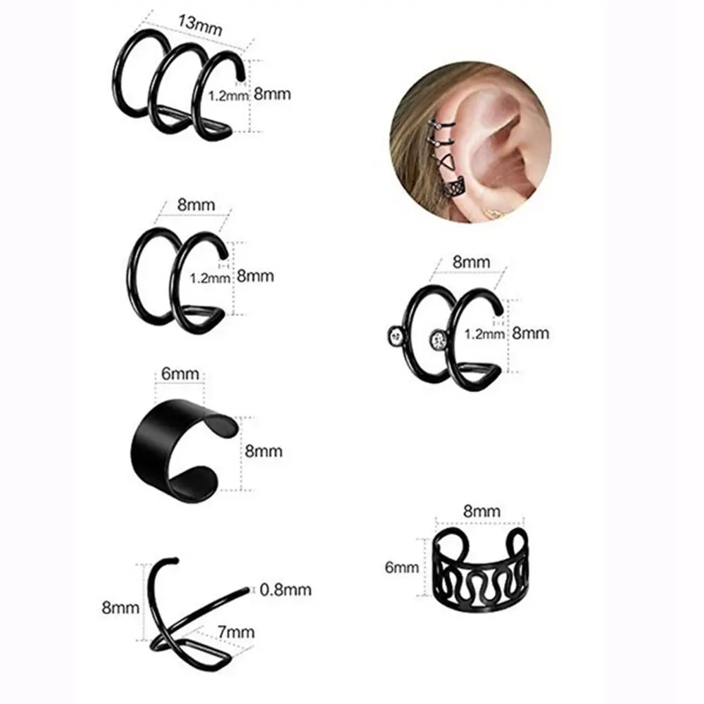 Изделие: ушные манжетыМатериал: нержавеющая стальДля: женщин, мужчинЦвет: серебристый, черный, золотой, розовое золотоПосылка включает в себя: 1 комплект (6 пар) ушной зажим