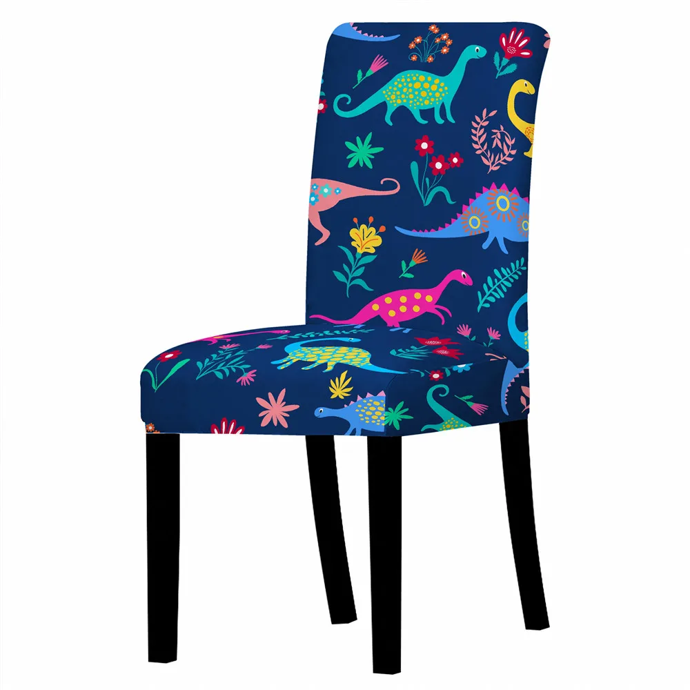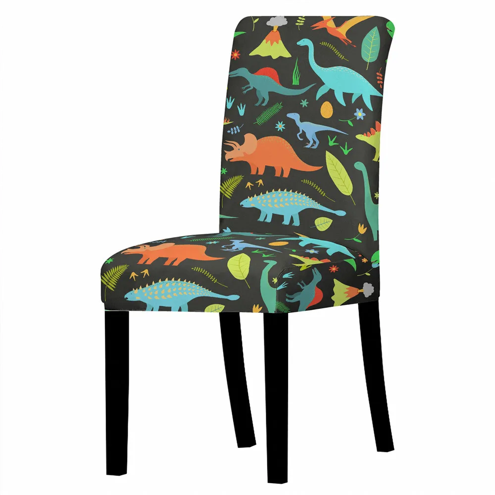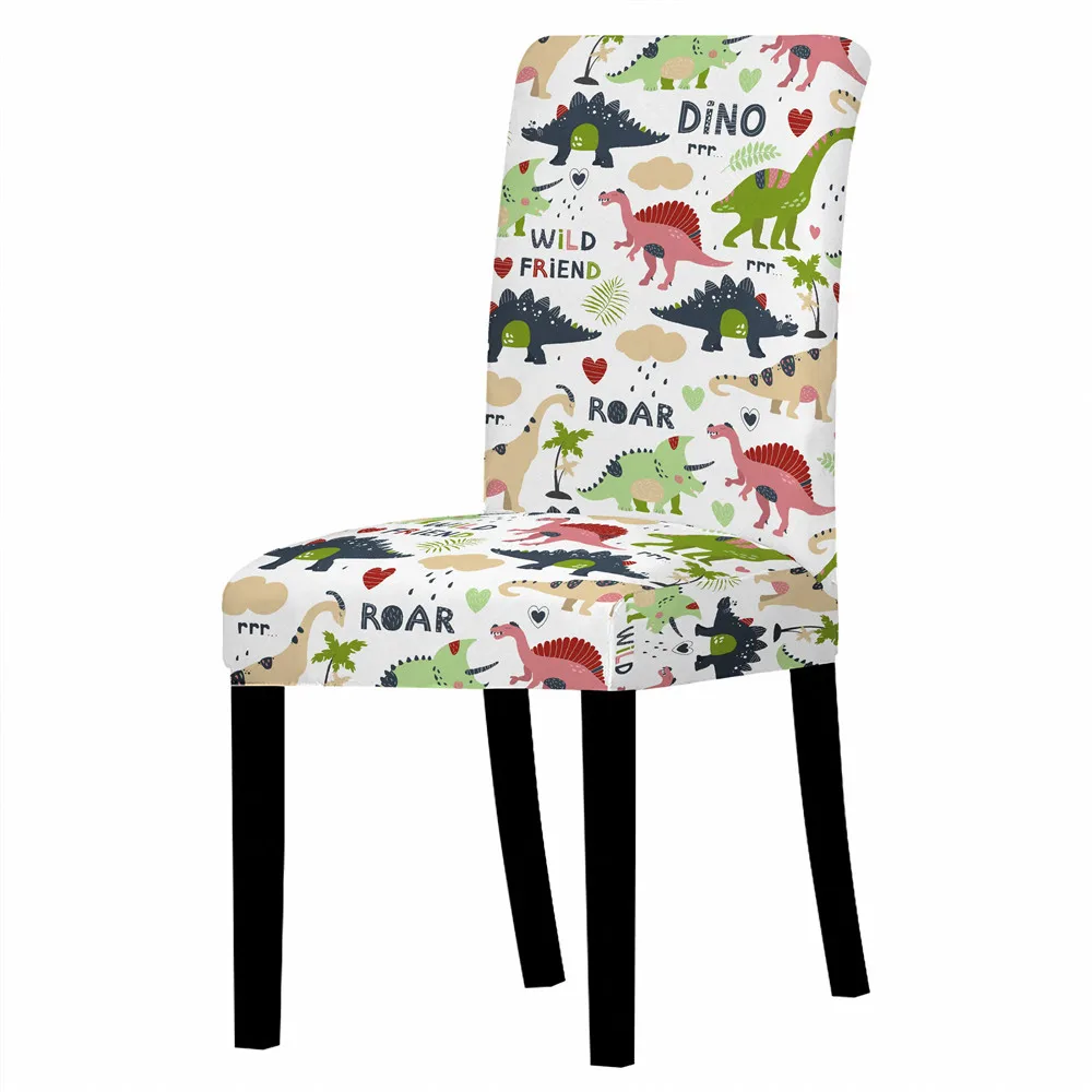 Мультяшный динозавр, эластичный обеденный чехол для кресла, растягивающиеся антигрязные гибкие чехлы на стулья для банкета