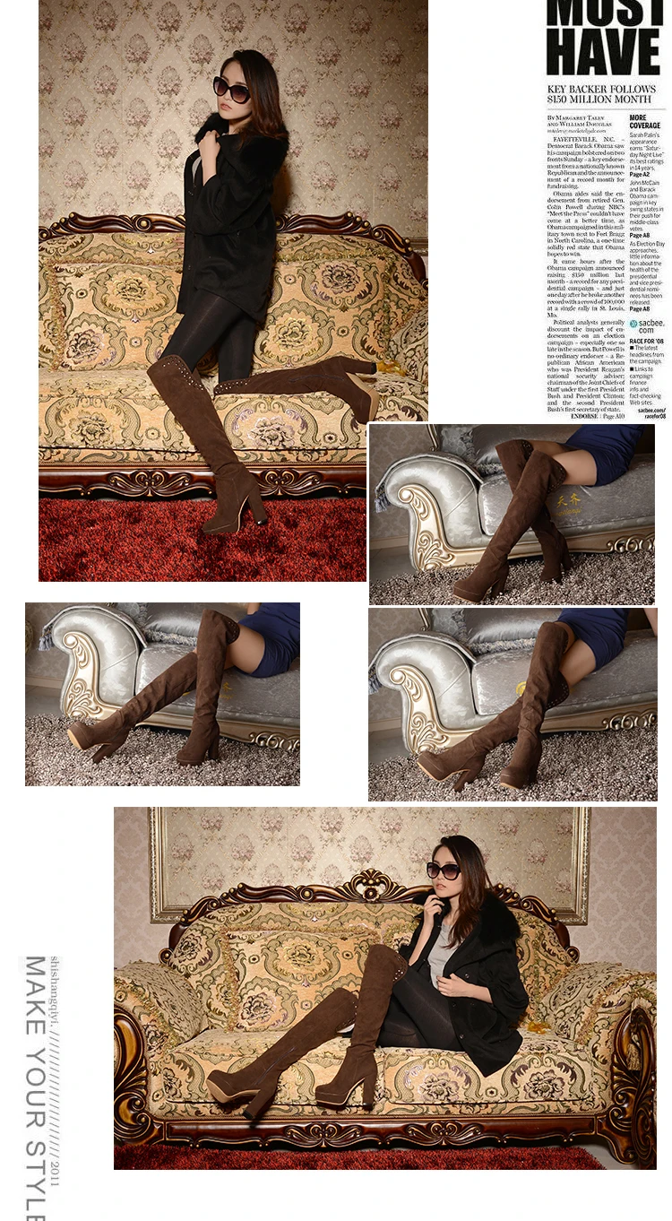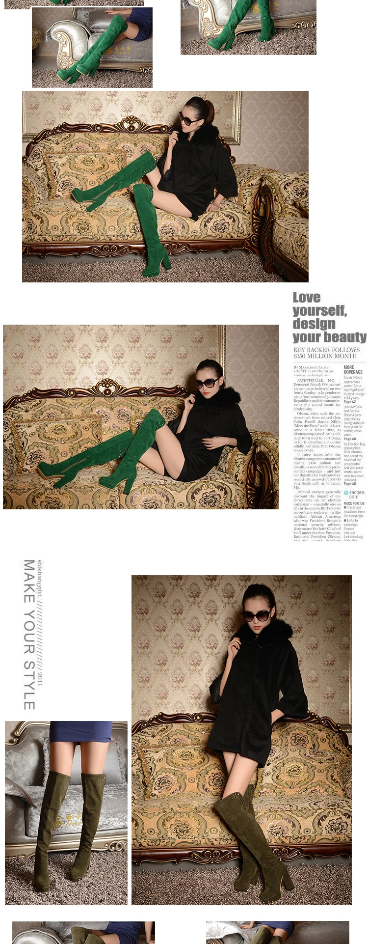 Женские сапоги выше колена на платформе, украшенные металлическими заклепками, Нескользящие, из флока, с плюшевой подкладкой, ботинки армейского зеленого цвета, большие размеры