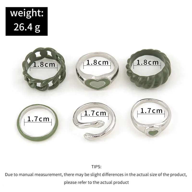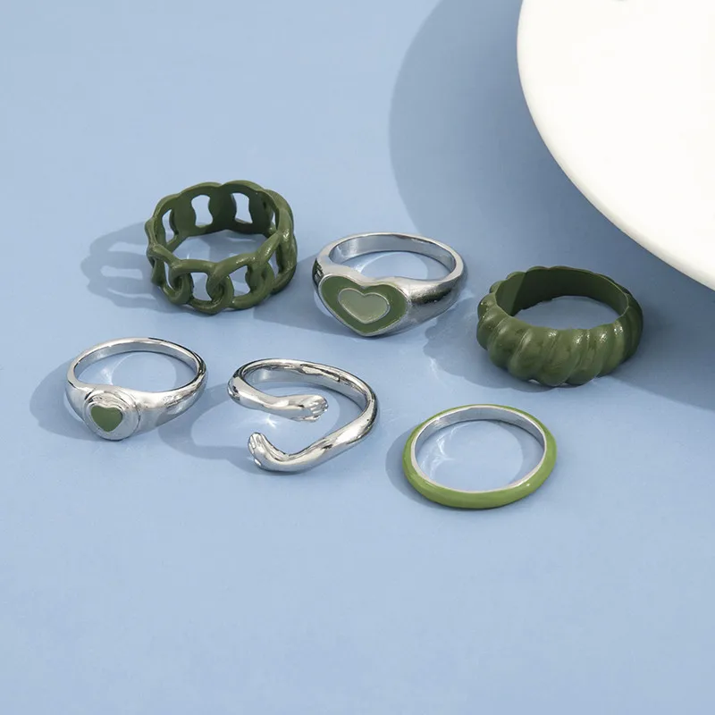 Набор Колец Y2K в Корейском стиле с зеленым покрытием из смолы для ...
