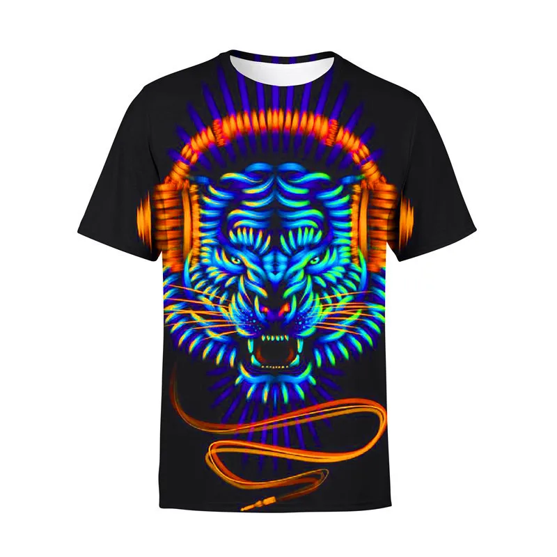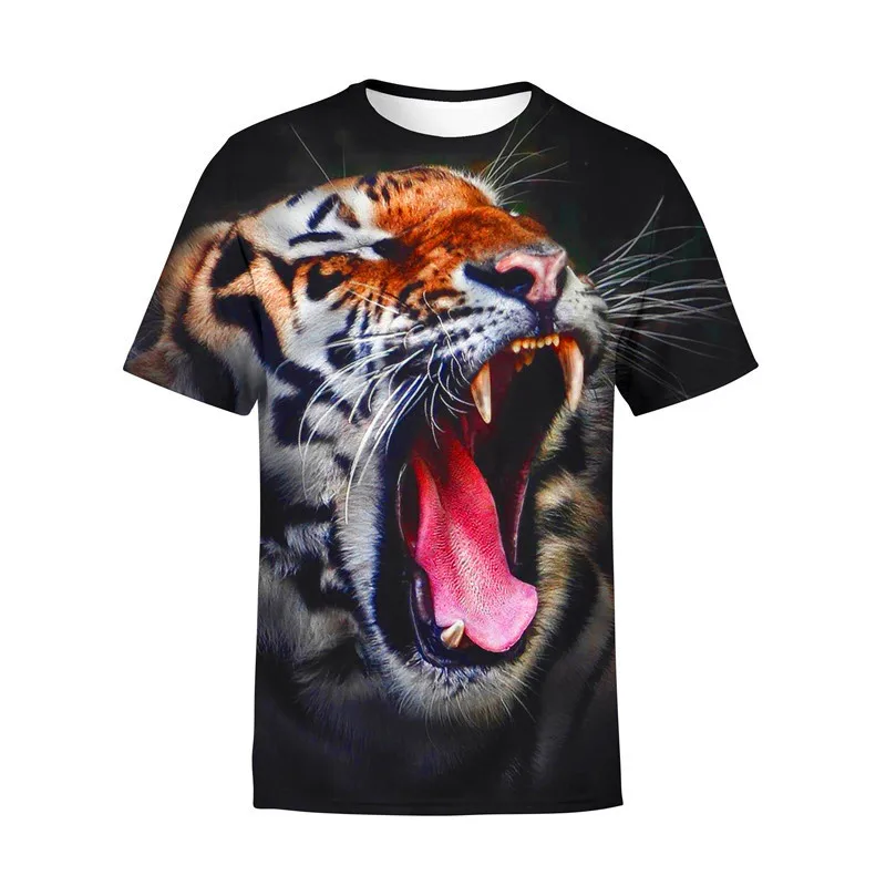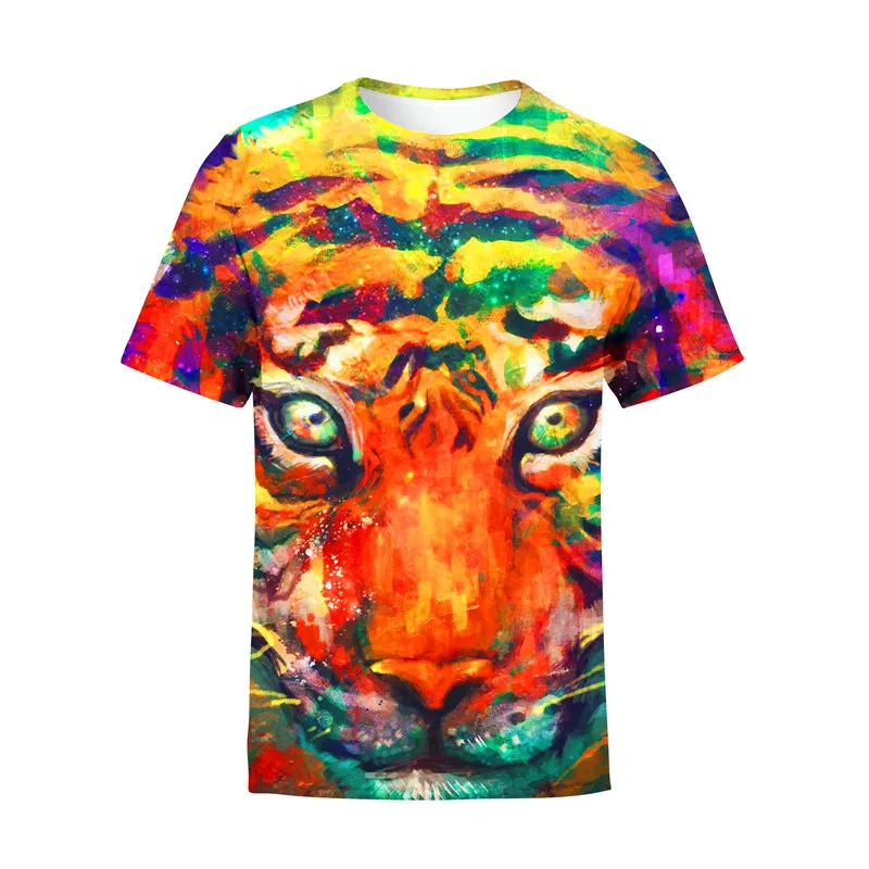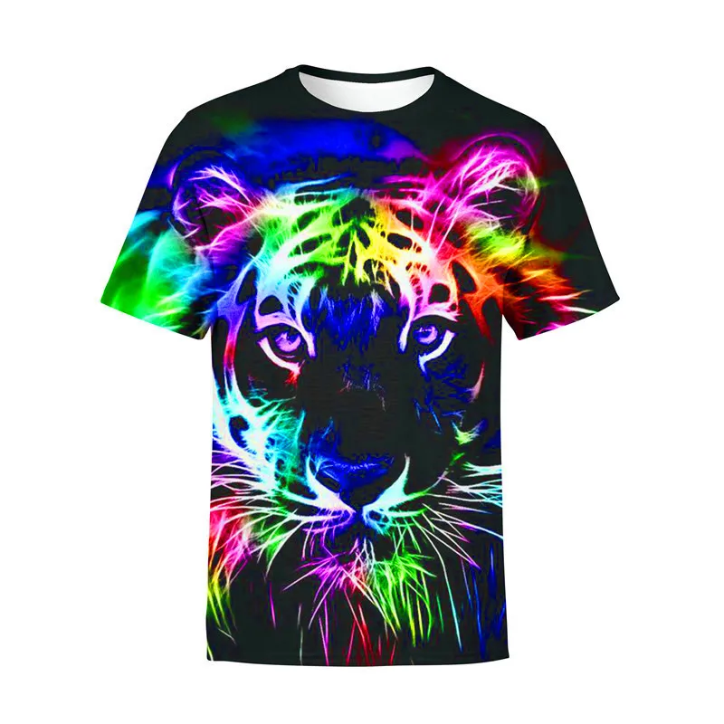 Новинка 2021, модная летняя милая детская одежда, футболка для детей, футболки для девочек с коротким рукавом и 3D-принтом тигра, топы, детская одежда