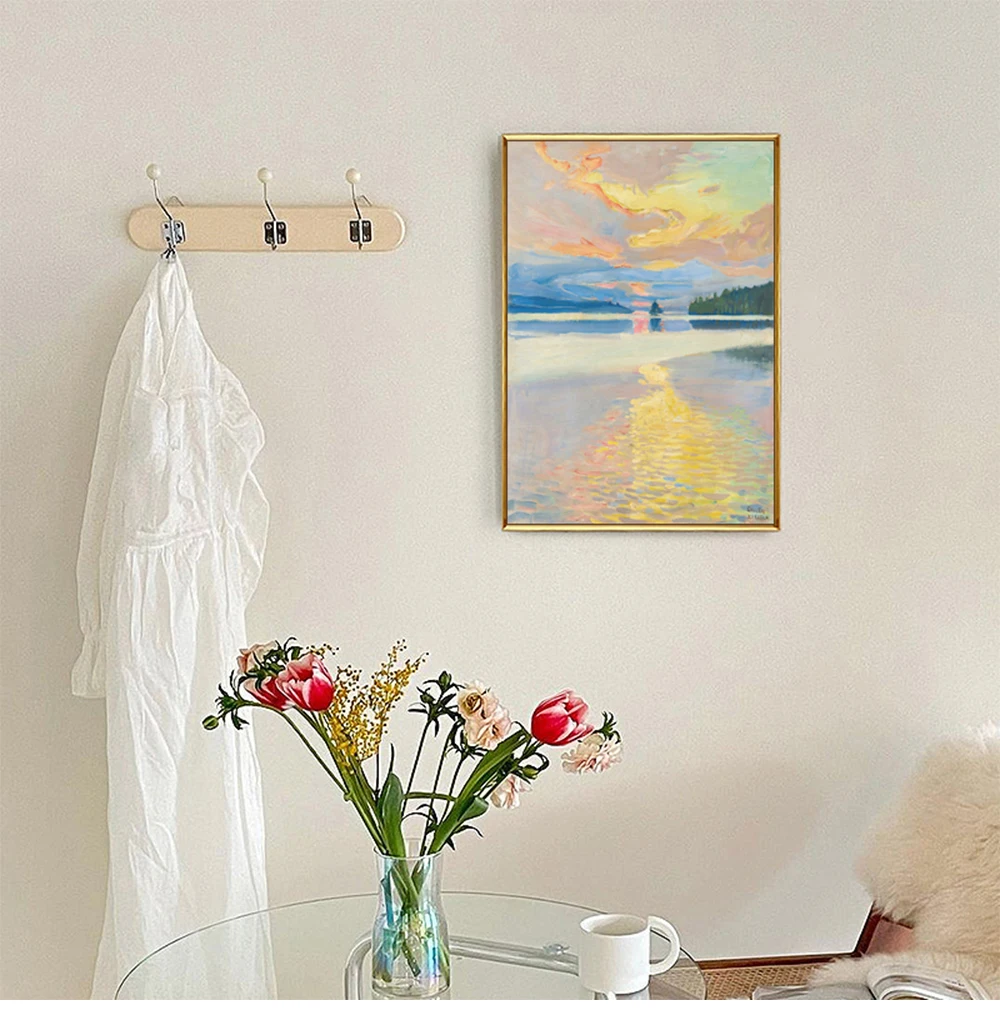 Скандинавская Современная Золотая солнечная волна настенный художес...