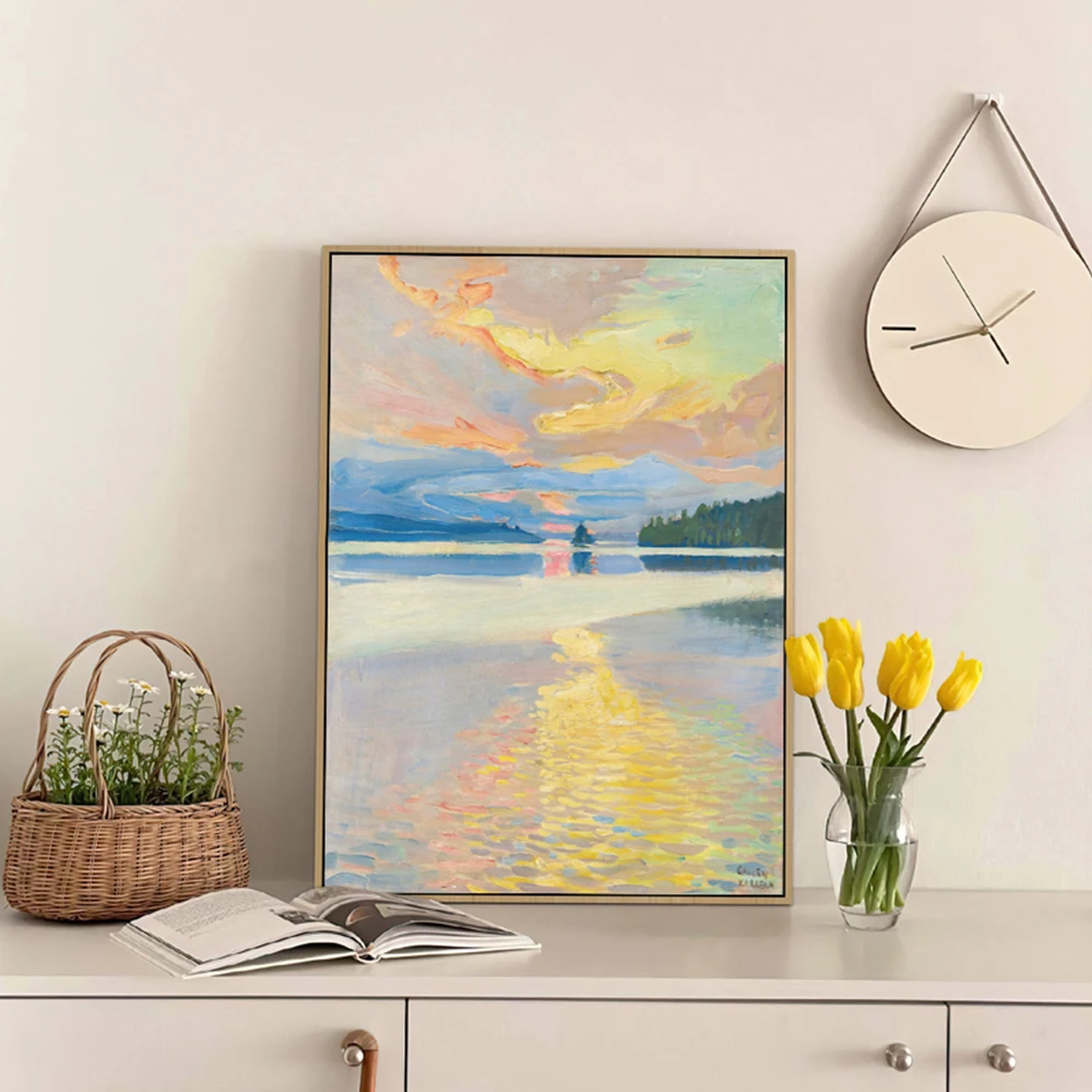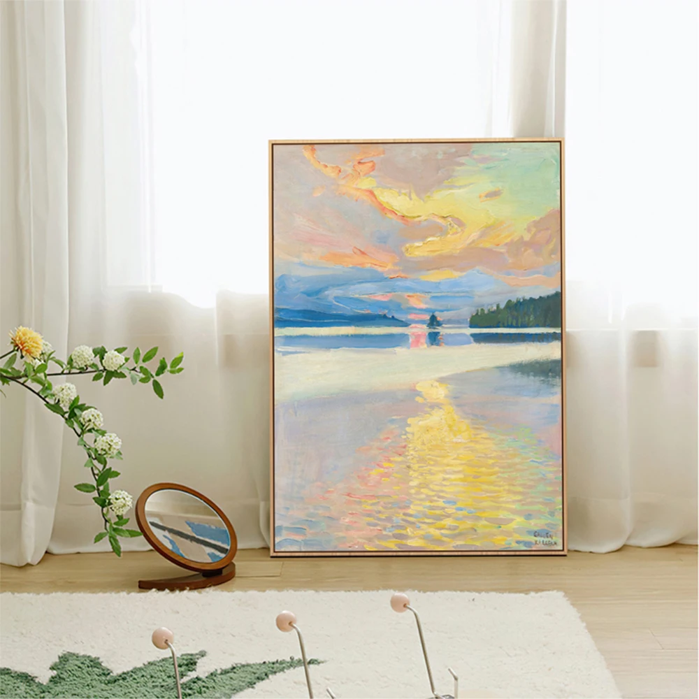 Абстрактная пейзажная живопись средневековая Солнечная сцена плакат...
