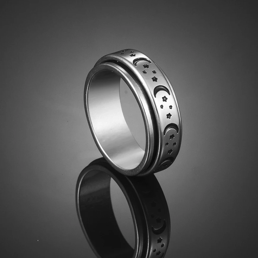Серебристое кольцо для тревоги из нержавеющей стали для женщин Луна Звезда цепь Спиннер Колечки вращаются свободно спиннинг анти-стресс для мужчин 2022