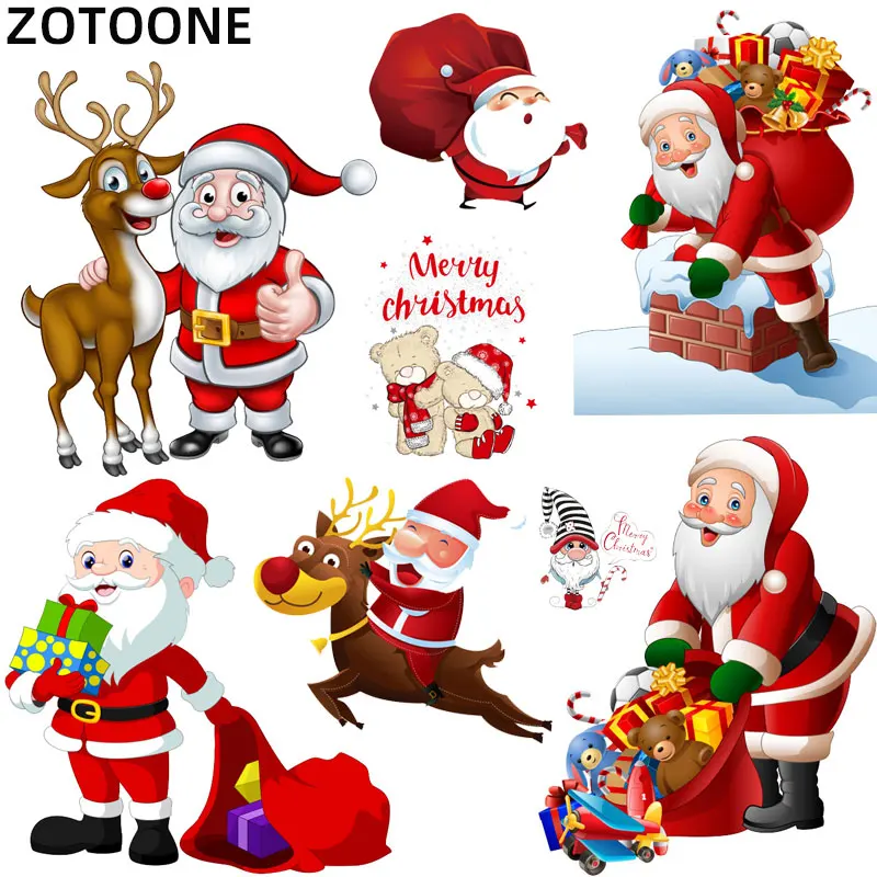 Рождественские термонаклейки для детской одежды, термотрансферные м...