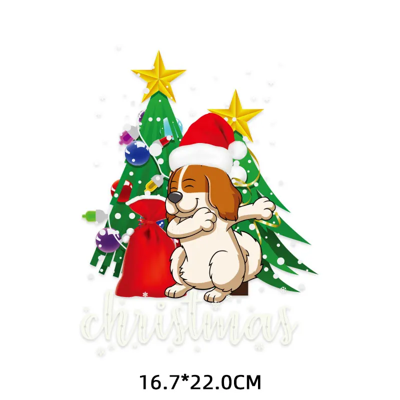 Термонаклейки на одежду с изображением собаки в рождественском стил...